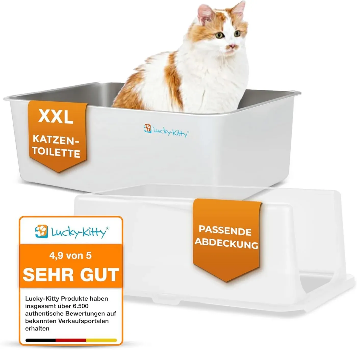 ![]() ![]() lucky kitty Lucky-Kitty Katzentoilette XXL Katzenklo aus Edelstahl mit Deckel absolut auslaufsicher, in weiß oder schwarz, große Katzentoilette, geruchsfrei, 60x40x20 cm weiß