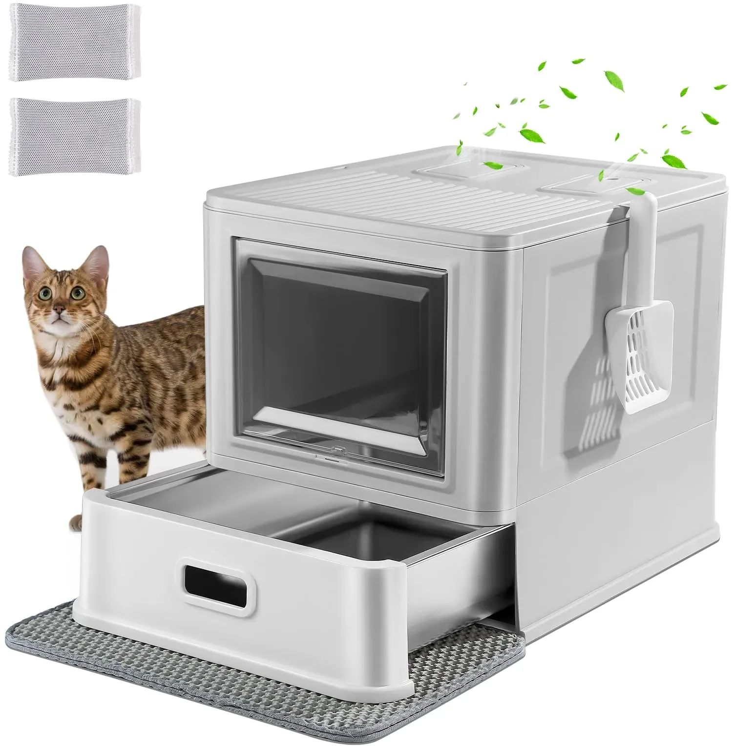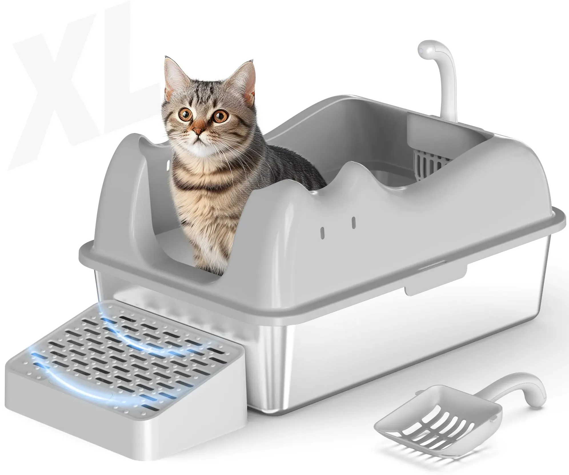 Katzenstreu Tierbedarf Katze Katzenklos & Katzenstreu Katzenklos & Katzentoiletten Haustierzubehör - Halboffene Katzentoilette Mophorn XL 0 Diese 6 Zoll tiefe Katzentoilette verfügt über hohe Seitenwände, ein Filter-Fußteil und eine robuste Metallschaufel, sodass sie leicht zu reinigen ist und Ihr Zuhause sauber bleibt. Ihr Fassungsvermögen von 30 Litern reduziert die Häufigkeit des Wechselns. Dank des Edelstahlmaterials ist sie langlebig und geruchsfrei. Halten Sie Ihr Zuhause frisch und Ihre Katze komfortabel, egal wie groß sie ist. Großes Fassungsvermögen Robuster Edelstahl Einfach zu reinigen Geruchsneutral Anti-Verschütte-Design Wesentliche Merkmale Geeignet für Katzen mit hohem Urinabsatz: Die Katzentoilette verfügt über einen tiefen Boden mit 15 cm hohen Wänden, die Urin und Streu im Inneren halten und häufige Reinigungen reduzieren. Geruchsneutral & einfach zu reinigen: Entwickelt, um Lecks zu verhindern, mit einer Druckknopfverbindung zwischen der oberen Abdeckung und der Wanne. Inklusive einer Metallschaufel mit langem Stiel für Komfort und einfache Reinigung. Vermeidung - gefunden von Kelkoo Eine antihaftbeschichtete, extra große Katzentoilette mit hohen Seiten, die Urinaustritt verhindert und leicht zu reinigen ist. ![]() ![]() suzzipaws Katzentoilette aus Edelstahl, antihaftbeschichtet, mit Deckel, extra große Katzentoilette für große Katzen, XL, mit hohen Wandseiten, Anti-Auslaufen, einfache Reinigung