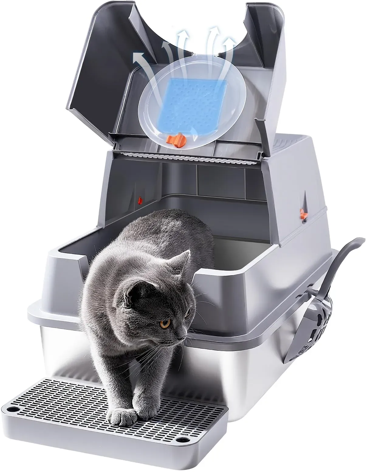 Der angezeigte Preis könnte seit dem letzten Update gestiegen sein - KEMORELA Extra große offene Katzentoilette aus Edelstahl, hohe Seiten, rostfrei, mit 4-teiligem Spritzschutz - Zustand: NEW - bei Aliexpress DE - gefunden von Buycentral Ein vielseitiges Modell mit Deckel, vorderer und oberer Tür, das eine gute Balance zwischen Preis und Funktionalität bietet. ![]() Katzentoilette aus Edelstahl mit Deckel, vordere und obere Tür, große Katzentoilette mit Sandfilter, Pedalstreuschaufel, Katzenzubehör
