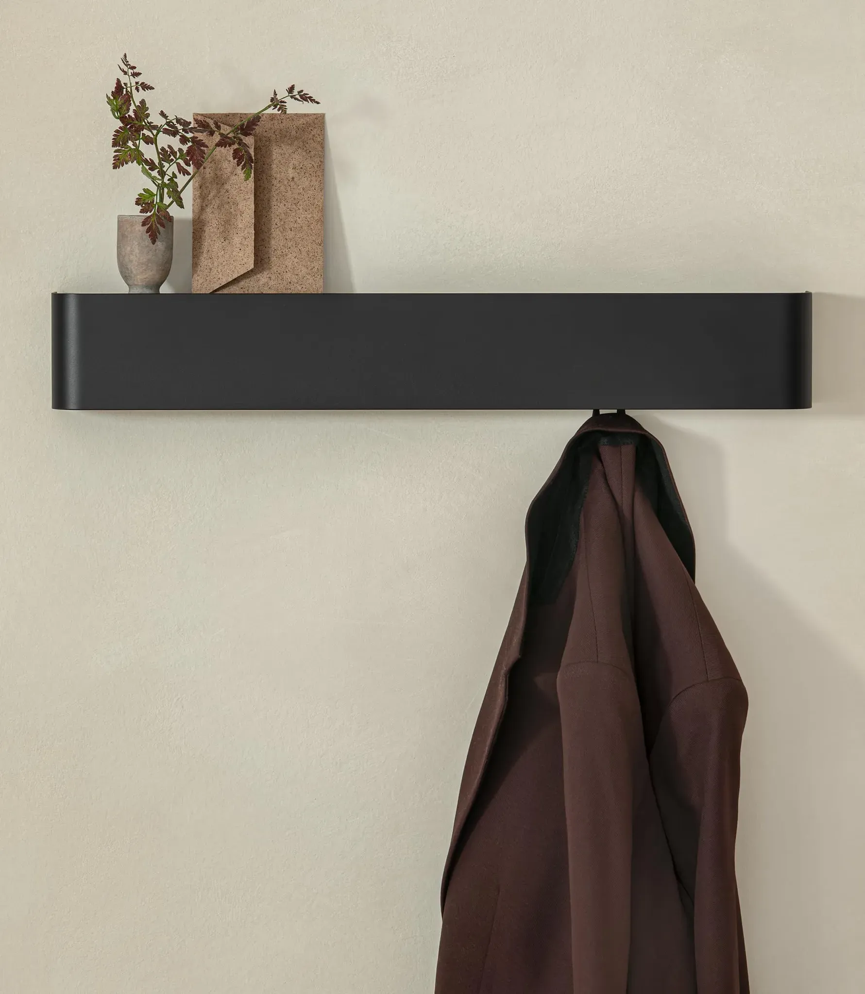 Zustand: Gebraucht - Wandgarderoben - Kazai. - K-WCR-E-T-8-WH - EAN: 4260585162692 - ð—™ð—¹ð—¶ð—²ßð—²ð—»ð—±ð—²ð˜€ ð——ð—²ð˜€ð—¶ð—´ð—» - Die Flur-Designlinie 'Tone', reduziert Produktformen auf das Wesentliche und führt sie in weichen Linien aus. Der Minimalismus der Wandgarderobe erscheint nicht streng, sondern als leises Stilmittel, das zurückhaltend und zugleich ausdrucksstark wirkt ð— ð—®ð˜ð˜ ð˜‚ð—»ð—± ð—•ð—²ð—¹ð—®ð˜€ð˜ð—¯ð—®ð—¿ - Massiver Edelstahl bildet die Grundlage. Eine fein strukturierte Pulverbeschichtung verleiht der Oberfläche des Garderobenpaneels ein mattes Finish, belastbar im Alltag und kratzfest in der Nutzung ð—”ð˜‚ð—³ð—µäð—»ð—´ð—²ð—» ð˜‚ð—»ð—± ð—”ð—¯ð—¹ð—²ð—´ð—²ð—» - Die zusätzliche Fläche oberhalb der Garderobenhaken erweitert die Funktion über das reine Aufhängen hinaus. Ob Alltagsgegenstände oder kleine Dekoration, alles wird Teil des Jackenhalter-Designs, ohne die Ruhe der Form zu stören ð—˜ð—¶ð—»ð—³ð—®ð—°ð—µð—² ð—ªð—®ð—»ð—±ð—ºð—¼ð—»ð˜ð—®ð—´ð—² - Die Garderobenleiste wird mit zwei Edelstahlschrauben sicher befestigt. Schrauben, Dübel und Inbusschlüssel sind im Lieferumfang enthalten - für eine Montage, die unkompliziert bleibt und sicher sitzt ð——ð—²ð˜€ð—¶ð—´ð—»ð—²ð—± ð—¶ð—» ð—•ð—²ð—¿ð—¹ð—¶ð—» - Die Hakenleiste 'Tone' stammt aus dem Hause KAZAI., einer Berliner Designmarke mit dem Anspruch, Garderobenmöbel zu gestalten, die mehr sind als funktional. Inspiriert von ... ![]() ![]() Kazai. Wandgarderobe 'Tone' | Moderne Garderobe mit versteckten Jackenhaken und Ablage | Design Flur-Garderobenleiste aus Metall | Hakenleiste Wand-Montage | Schwarz