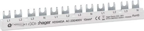 Sofort verfügbar (Lieferzeit 1-3 Werktage)Hager KDS463AS, Phasenschiene 12 Module, L1L2L3N-L1L2L3N-L1N-L2N, QuickBusbar
