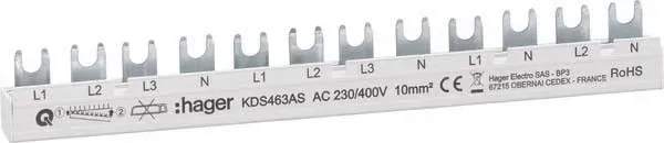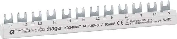 Sofort verfügbar (Lieferzeit 1-3 Werktage)Hager KDS463A, Phasenschiene 12 Module, L1L2L3N-L1L2L3N-L1L2L3N, QuickBusbar