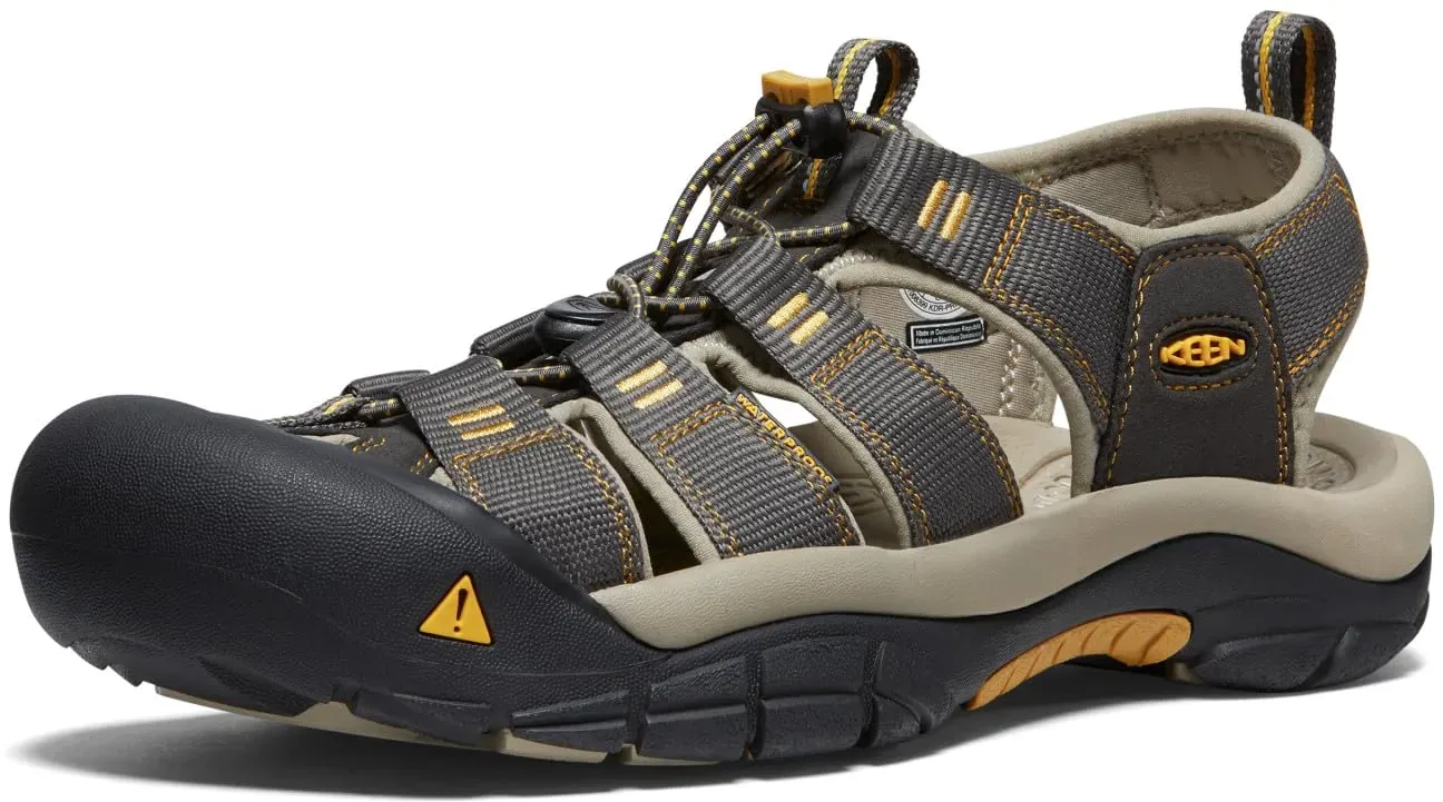2 Händlerangebote bei billiger.de - Kategorie: Herren-Sandalen - Keen - Wasserabweisendes Obermaterial: waschbares Polyester-Gurtband mit schnell trocknendem Futter für den aktiven Einsatz im und außerhalb des Wassers; PFC-frei, langlebig, wasserabweisend hilft Wasser zu verlieren und die Qualität und Lebensdauer des Materials auf diesen Herren-Sportsandalen zu verlängern Traktion und Schutz: Multidirektionale Stollen mit Trinken sorgen für hervorragenden Halt auf rutschigem Gelände; abriebfeste Gummi-Außensohlen hinterlassen keine Abdrücke beim Gehen in Innenräumen; ikonischer Zehenschutz bietet zusätzliche Sicherheit, um Verletzungen zu verhindern Unterstützung und Komfort: Bungee-Captain-System mit Schnürverschluss bietet eine sichere Passform und bietet gleichzeitig schnelles und einfaches An- und Ausziehen; formgepresste Zwischensohle für verbesserte Dämpfung Passform und Innensohle: Nicht herausnehmbares EVA-Fußbett mit zusätzlicher Unterstützung für den ganzen Tag Komfort; natürliche Technologie wird verwendet, um Schuhgeruch zu verhindern Pflegetipps: Alle Keen Wassersandalen sind maschinenwaschbar; verwenden Sie eine kleine Menge Waschmittel, waschen Sie sie im Schonwaschgang und lassen Sie sie an der Luft trocknen - GTIN:0191190472699 Ein weiteres sehr preiswertes Angebot, das sich für Schnäppchenjäger eignet. ![]() ![]() Keen Herren - Sandale Newport eBay H2