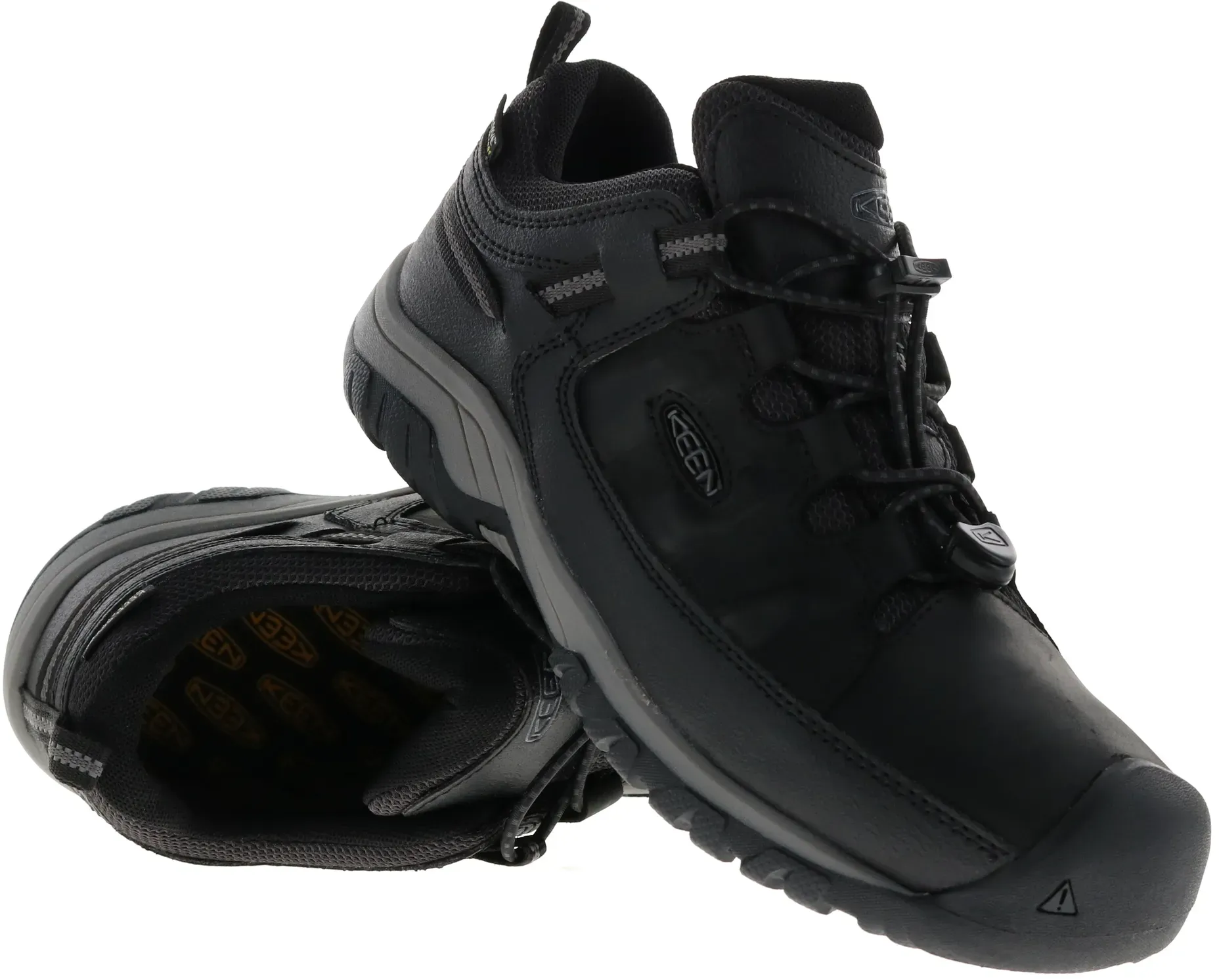 Verfügbarkeit: 2-3 Werktage - Kategorie: Wanderschuhe - Keen - GTIN:0195208795930 - Diese Outdoorschuhe der Marke Keen ist eine gute Wahl, wenn es um Aktivitäten in der freien Natur geht. Der Schuh hat einen niedrigen Schaft und eine runde Spitze sowie eine Schnürung. Damit kann er in der Weite reguliert und dem Fuß angepasst werden. Die Sohle ist abriebfest und unterstützt ein sicheres Auftreten auf Asphalt, Waldwegen oder unebenem Gelände. Damit eignet sich KEEN.ALL-TERRAIN ideal für Aktivitäten, bei denen Trittsicherheit und Vielseitigkeit gefragt sind. Die wasserdichte und atmungsaktive KEEN.DRY -Membran ist in das Innenfutter des Schuhs integriert. Sie verhindert das Eindringen von Wasser von außen, lässt gleichzeitig aber Feuchtigkeit aus dem Inneren entweichen. So bleiben die Füße auch bei Nässe, Regen oder anspruchsvollen Bedingungen angenehm trocken. Das Obermaterial aus Synthetik ist pflegeleicht und kann einfach mit einem feuchten Tuch gereinigt werden. Für eine Tageswanderung können die Outdoorschuhe gut mit einer Trekkinghose, einer Regenjacke und verstärkten Wandersocken getragen werden., Farbe: Farbbezeichnung: TRIPLE BLACK, Material: Obermaterial: Synthetik, Textil, Innenmaterial: Textil, Herstellertechnologien: KEEN.ALL-TERRAIN, Details: Besondere Merkmale: wasserdicht, Verschluss: Schnürung, Schuhspitze: rund, Sohle: Laufsohlenmaterial: Gummi, Laufsohlenprofil: profiliert, Eigenschaften: Membrane: KEENDRY, Passform/Schnitt: Schuhhöhe: ... Dieser Winterschuh ist ein Premium-Modell für extreme Bedingungen und bietet hervorragende Isolierung und Schutz. ![]() Keen - Revel IV Mid Polar - Winterschuhe 48 | EU 48 braun/schwarz