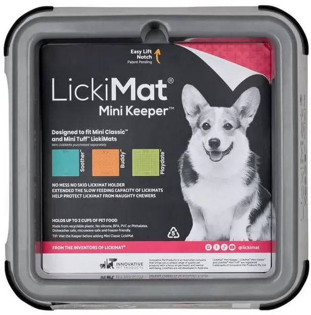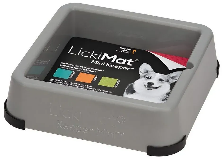 LickiMat - EAN: 9349785005529 - Der LickiMat Keeper passt perfekt zu den LickiMat Mini Soother-, Mini Buddy- und Mini Playdate-Futtermatten. Er verhindert das Kauen und hält Ihre Böden sauber! Der Mini Keeper wird geliefert inklusiv 1 Mini Playdate, 1 Mini Soother und 1 Mini Buddy. LickiMat Mini Keeper - Spezifikationen: - Recycelbar Spülmaschinenfest - BPA frei - Kein PVC - Keine Phthalate - Kein Silikon. Die mitgelierten LickiMat Classic Mini Playdate, Soother und Buddy sind nicht spülmachinenfest, bitte mit der Hand reinigen. - bei fressnapf.de - aus Yadore Produktdaten Ein beliebtes LickiMat Futternapf Mini Keeper Bundle in Grau, das zur Beschäftigung von Haustieren dient. ![]() ![]() LickiMat Futternapf Mini Keeper Bundle grau