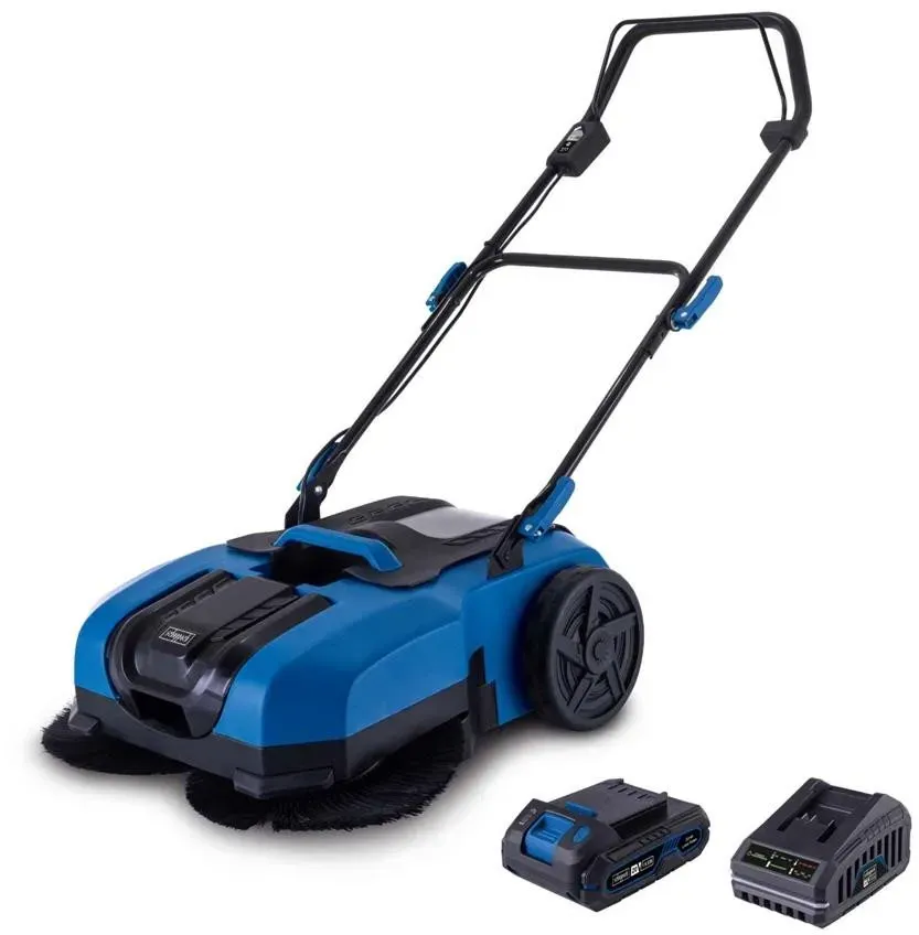 lieferbar-in 2-3 Werktagen bei dirScheppach Handkehrmaschine C-S610-X SET S, 610 cm Arbeitsbreite, (Set, 3-St., Set), inkl. Starter-Kit SBSK2.0 2,0 Ah Akku und 2,4 A Ladegerät blau|schwarz
