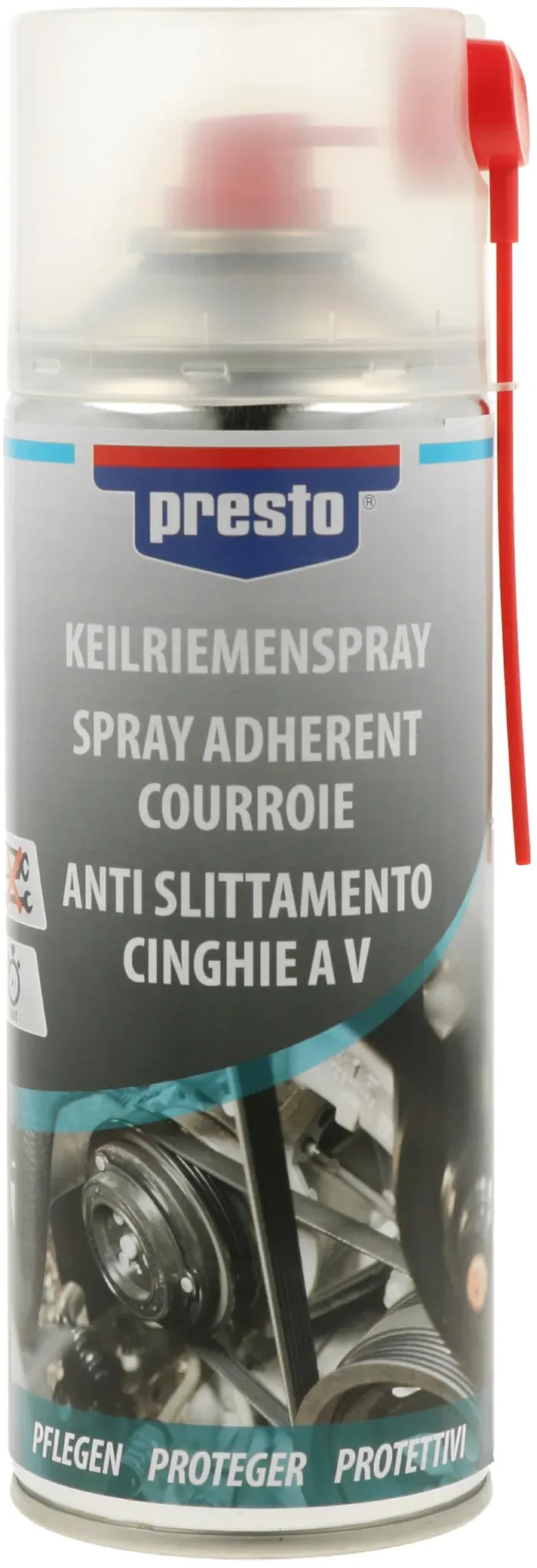 european aerosols - EAN: 4048500157042 - presto Keilriemenspray beseitigt und verhindert das Rutschen und Quietschen von Keilriemen. Durch seine hervorragende Haftung ist ein langanhaltender Schutz, sowie verzögerte Abnutzung gewährleistet. Einsatzgebiete: Eigenschaften: - bei hornung-baushop.de - aus Yadore Produktdaten Das MW Keilriemenspray ist eine kostengünstige Option für die Motorpflege und Riemenwartung. ![]() ![]() MW Keilriemenspray Keilriemen Motorpflege Riemenspray 400ml
