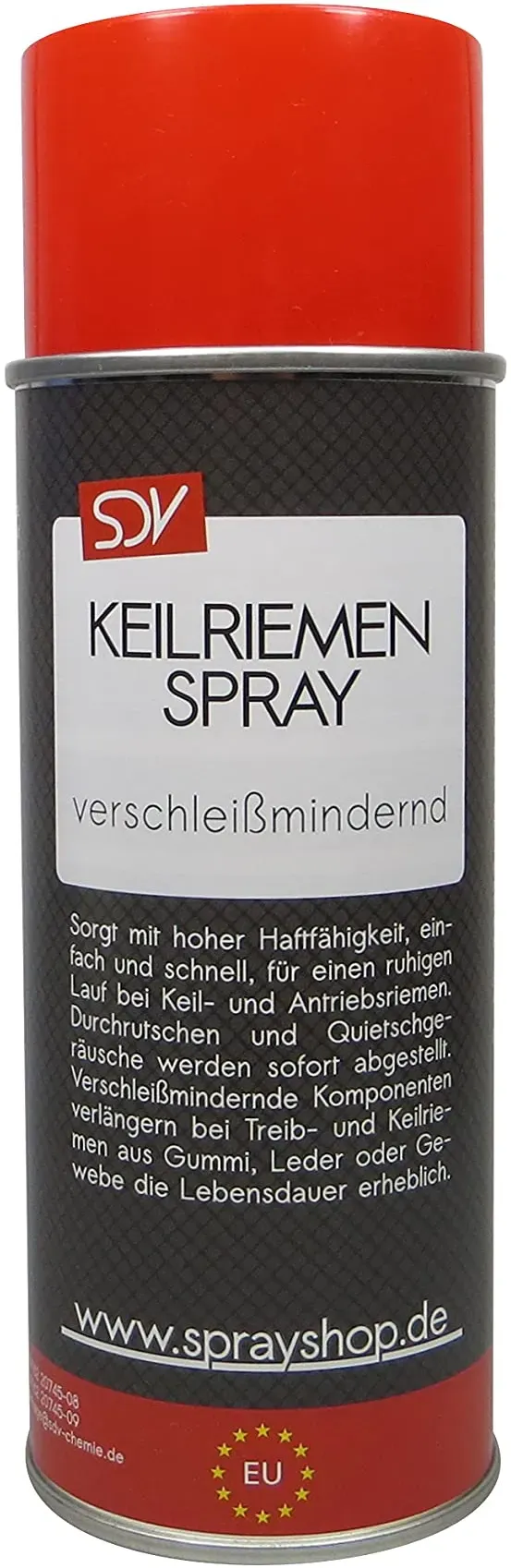 Kategorie: öle & Schmierstoffe - SDV Chemie - GTIN:4260226833165 - SDV Chemie KEILRIEMENSPRAY sorgt mit hoher Haftfähigkeit, einfach und schnell, für einen ruhigen Lauf bei Keil- und Antriebsriemen gute Haftfähigkeit und dadurch lang anhaltende Schmierwirkung hohe Anfangshaftung, verhindert ein Durchrutschen und Quietschen pflegt und schützt verbesserte die Kraftübertragung und erhöht die Durchzugskraft sowie die Leistung - 12,85 Euro bei Amazon Marketplace Automotive - gefunden von billiger.de Das WEICON Keilriemen-Spray ist eine hochwertige Riemenbeschichtung für verschiedene Antriebsriemenarten. ![]() ![]() WEICON Keilriemen-Spray - Riemenbeschichtung für eBay Antriebsriemen aller Art | 400 ml
