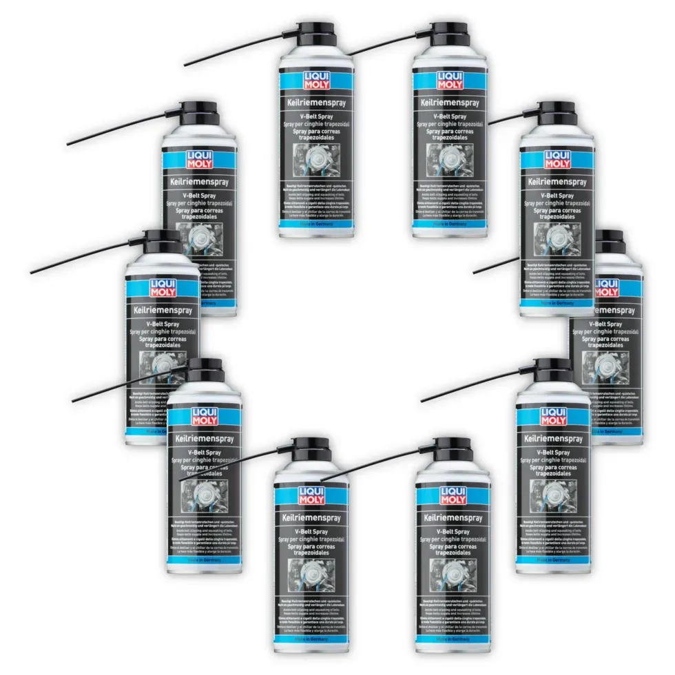 Zustand: Neu - 22,48 € / l - Öle & Betriebsstoffe - Liqui Moly - 4085 P000539 - EAN: 4100420040856 EAN: 4100420416347 - hoher Wirkungsgrad multifunktionell einsetzbar beugt Alterung vor pflegt und schützt schont Riemen und Scheiben vor Verschleiß verhindert Riemenschlupf beseitigt Quietschen nicht für Flachriemen geeignet - 20 Händler im amazon.de Marketplace Das WerkXheld Keilriemenspray ist ein Hochleistungs-Riemenspray, das eine schnelle Wirkung und Geräuschreduzierung verspricht. ![]() ![]() WerkXheld Keilriemenspray 400ml | Hochleistungs-Riemenspray für Auto, Industrie & mehr | Verlängert Lebensdauer von Keilriemen | Schnelle Wirkung & Geräuschreduzierung
