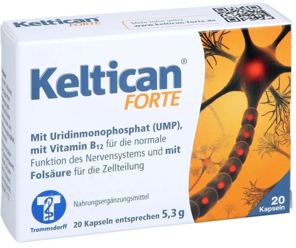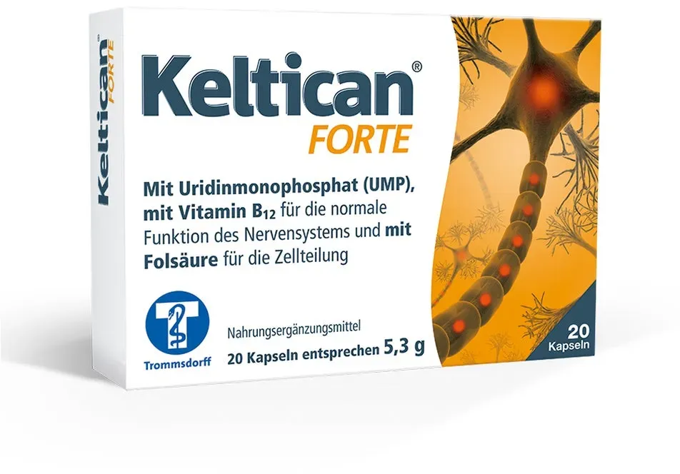 Keltican forte META PreisvergleichMit dem Meta-Preisvergleich suchen Sie gleichzeitig bei den großen Preisvergleich Portalen!Jetzt live Suche nach keltican forte starten! Keltican forte KaufberatungKeltican Forte ist ein Nahrungsergänzungsmittel, das vor allem zur unterstützenden Behandlung von Nervenschmerzen (Neuralgien), Rückenschmerzen bei Bandscheibenvorfall und Polyneuropathien eingesetzt wird. Es enthält die Wirkstoffe Uridinmonophosphat (UMP), Vitamin B12 und Folsäure, die die Regeneration und Reparatur geschädigter Nerven fördern[3][11][13]. Wichtige Hinweise zur Anwendung:
