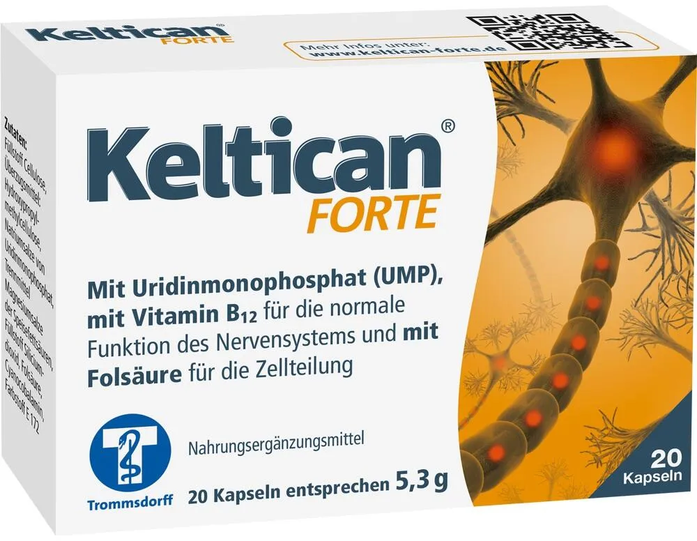 Zustand: Neu - 1.441,31 € / kg - Vitamin B12 Vitamin B12 Präparate - Keltican Trommsdorff GmbH & Co. KG - 14352754 - EAN: 4260083220436 EAN: 4150143527547 - Unterstützt die körpereigene Regeneration der peripheren Nerven mit dem Nervenbaustein Uridinmonophosphat (UMP) sowie den Vitaminen B12 und Folsäure Die einzigartigen Mikropellets mit der Kombination aus UMP, B12 und Folsäure optimieren die Nährstoff-Versorgung des Körpers in Hinblick auf die Nervenregeneration Die körpereigene Nervenregeneration spielt besonders im Schulter-Nacken-Bereich, im unteren Rücken und in den Füßen eine wichtige Rolle Keltican forte - das Original seit über 4 n und die Nr. 1 Arzt-Empfehlung zur Nervenregeneration Gut verträglich und nur 1 Kapsel täglich - natürlich gluten-, lactose-, gelatinefrei und vegan - 18 Händler im amazon.de Marketplace Ein weiteres großes Doppelpack mit 2x80 Kapseln zu einem sehr guten Preis. ![]() ![]() Trommsdorff KELTICAN forte 2X80 St