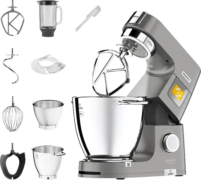 Auf Lager Versand durch AmazonKenwood Titanium Chef Patissier XL KWL90.034SI ? Küchenmaschine mit integrierter Waage & 7 L Rührschüssel mit Wärmefunktion, 1400 Watt, inkl. 4-teiligem Patisserie-Set, silber