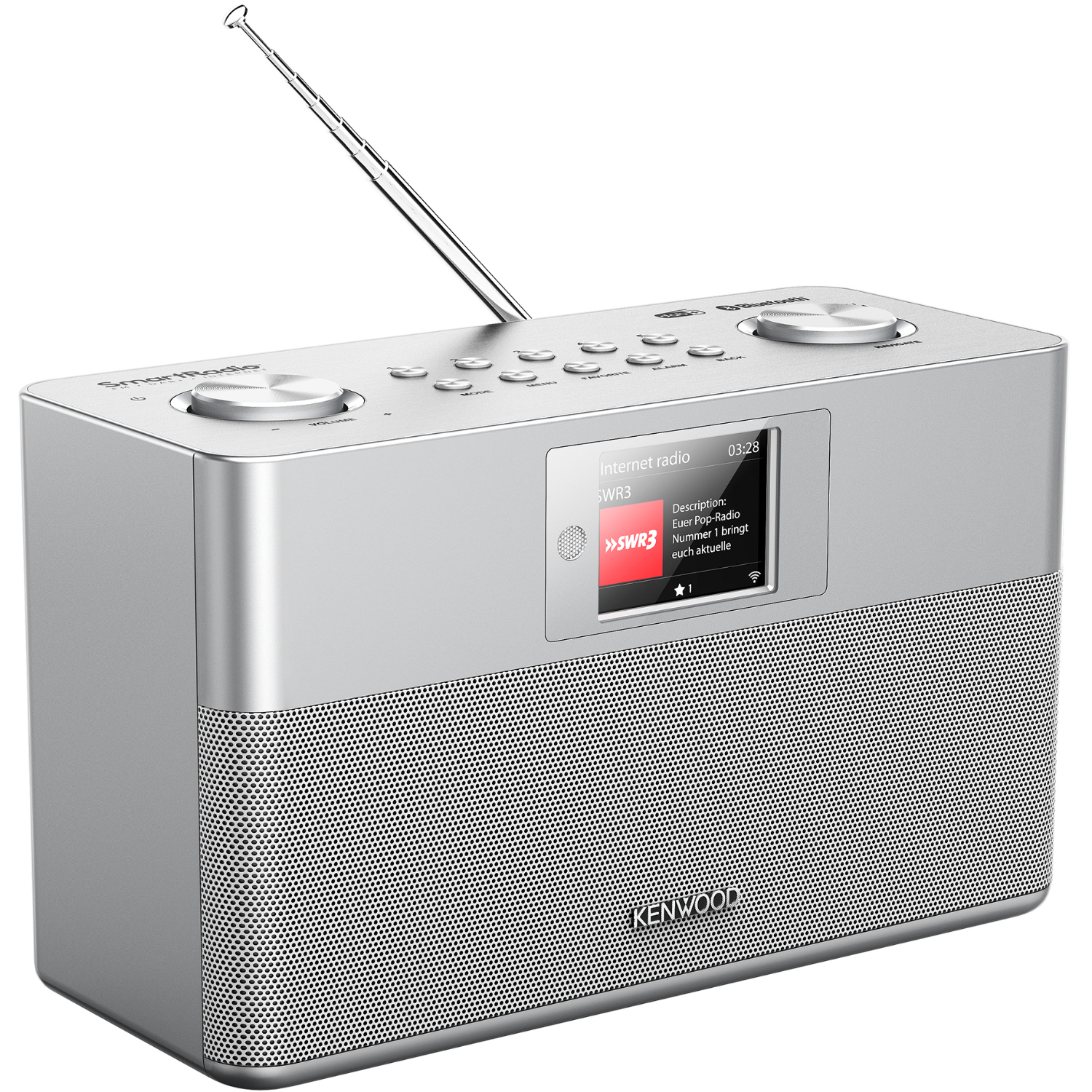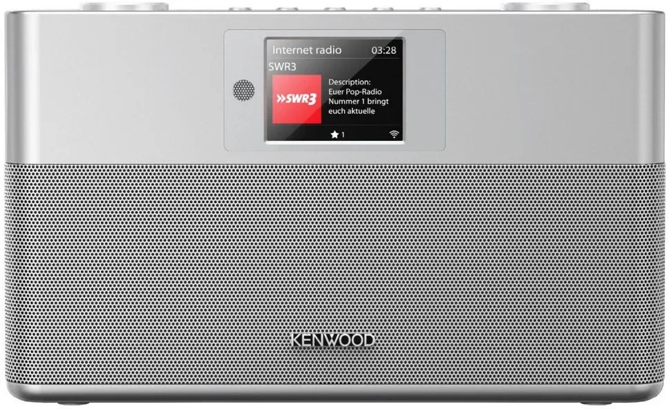 Verfügbarkeit: Lieferung in 2-3 Werktagen - Kategorie: Radios - Kenwood - GTIN:0019048230812 - CR-ST100S-W Smart-Radio mit DAB+, Internetradio, UKW, Bluetooth, USB und TFT-Farbdisplay. 6.1 cm großes TFT-Farbdisplay Internetradio per WiFi DAB+ und UKW RDS-Empfänger Spotify Connect 20 Presetsstationen / 10 Spotify-Presets Bluetooth Audiostreaming (A2DP) zur Wiedergabe von Smartphone oder Tablet Uhrfunktion inkl. Wecker und Sleeptimer Fernbedienbar per Smartphone-App UNDOK USB und Line-In-Anschluss (3,5 mm) Line-Out Anschluss (3,5 mm) Verstärker mit 2 x 10 W RMS Bassreflex Stereo-Lautsprecher IR-Fernbedienung im Lieferumfang - 119,99 Euro bei Saturn Online Shop - gefunden von billiger.de Mit 122.5 Euro ist dieses silberne Modell eine gute Wahl für alle, die eine klassische Optik bevorzugen und dabei nicht zu viel ausgeben möchten. ![]() ![]() Kenwood CR-ST100S Silber