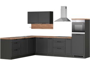 Lifestyle - - Produktdetails: Serie: Landzeit, Ausstattung Funktionen: Art Küche: Küchenzeile, Ausführung: mit E-Geräten, Induktionskochfeld, Einbauspüle, Ausstattung: Durchgehende Arbeitsplatte, Höhenverstellbare Füße, Schubkästen und Türen mit Soft-Close-Funktion, Seitenverkehrt stellbar, Ausstattung Geräte: mit E-Geräten, Farbe Material: Farbe Korpus: piniefarben, Material Korpus: Holzwerkstoff, Farbe Front: piniefarben, Material Front: Holzwerkstoff, Farbe Schubladen: piniefarben, Farbe Türen: piniefarben, Farbe Griffe: schwarz, Material Griffe: Kunststoff, Farbe Arbeitsplatte: metallicfarben, Material Beschläge: Metall, Material Schubladenauszug: Metall, Maßangaben: Breite: 320 cm, Tiefe: 60 cm, Höhe: 240 cm, Arbeitshöhe inkl. Arbeitsplatte: 91 cm, Breite Frontblende: 60 cm, Höhe Frontblende: 71 cm, Informationen Frontblende: Tiefe der Blende: 1,6 cm, Hinweis Maßangaben: Alle Angaben sind ca.-Maße., Unterschrank: Anzahl Unterschränke: 1 Stk., Art Unterschrank: Schubkastenschrank, Breite Unterschrank: 90 cm, Tiefe Unterschrank: 57 cm, Höhe Unterschrank: 87 cm, Anzahl Schubladen Unterschrank: 3 Stk., Informationen Unterschrank: 1x kleiner Schubkasten, B/H/T 82,5x7,6x38,4 cm, 2 große Schubkästen, B/H/T 82,5x17,4x38,4 cm, Schubkastenböden bis zu 3 kg belastbar, Softclose, Hängeschrank: Anzahl Hängeschränke: 1 Stk., Art Hängeschrank: Drehtürenschrank, Breite Hängeschrank: 90 cm, Tiefe Hängeschrank: 35 cm, Höhe Hängeschrank: 90 cm, Anzahl Türen Hängeschrank: 2 Stk., Anzahl ... Eine solide Winkelküche in Grau, die eine gute Balance zwischen Preis und Größe bietet. ![]() Winkelküche KOCHSTATION 'KS-Lana', grau (küche: grau, front: grau matt, korpus: graphit, arbeitsplatte: wotaneichefarben), B:240cm H:200cm T:300cm, Komplettküchen-Sets, Stellbreite 240/300 cm, wahlweise mit E-Geräten