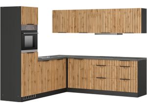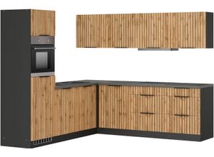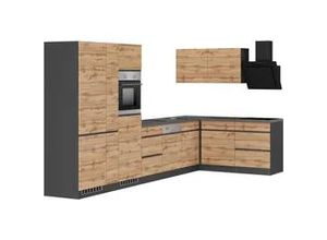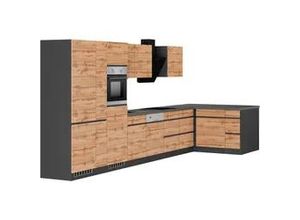 Lifestyle - - Produktdetails: Markeninformationen: Kochstation schafft Küchen, die perfekt zum Kochen und gleichzeitig erschwinglich sind. Durch ihr Design, ihre Wandelbarkeit und ihre durchdachten Details werden sie zum Zentrum des Lebens im eigenen Zuhause., Serie: Lagos, Ausstattung Funktionen: Art Küche: Winkelküche, Ausführung: mit E-Geräten, Induktionskochfeld und schwarzen Kunststeinbecken, Ausstattung Geräte: mit E-Geräten, Farbe Material: Farbe Korpus: grafitgrau, Material Korpus: Holzwerkstoff, Farbe Front: Listrado Eiche, Material Front: Spanplatte, Farbe Schubladen: Listrado Eiche, Farbe Türen: Listrado Eiche, Farbe Griffe: schwarz, Material Griffe: Metall, Farbe Arbeitsplatte: betongrau, Farbe Innendekor: weiß, Material Beschläge: Metall, Material Schubladenauszug: Metall, Hinweis Farbe: Bitte beachten Sie, dass bei Online-Bildern der Artikel die Farben auf dem heimischen Monitor von den Originalfarbtönen abweichen können., Maßangaben: Breite: 240 cm, Tiefe: 60 cm, Höhe: 200 cm, Breite Schenkel 1: 240 cm, Breite Schenkel 2: 240 cm, Arbeitshöhe inkl. Arbeitsplatte: 86 cm, Höhe Frontblende: 70,2 cm, Informationen Frontblende: Micromillingfront: Präzise gefräste Strukturen für außergewöhnliche Haptik, Hinweis Maßangaben: Alle Angaben sind ca.-Maße., Unterschrank: Anzahl Unterschränke: 2 Stk., Art Unterschrank: Auszugsschrank, Breite Unterschrank: 60 cm, Tiefe Unterschrank: 60 cm, Höhe Unterschrank: 82 cm, Anzahl Schubladen Unterschrank: 1 Stk., Anzahl Auszüge ... Diese Küchenzeile im Landhausstil bietet mit 320 cm Breite viel Arbeitsfläche und ist wahlweise mit E-Geräten erhältlich. ![]() Küchenzeile BASIC BY BALCULINA 'Landzeit BxHxT 320x240x60 cm', küche: natur, front: piniefarben, korpus: piniefarben, arbeitsplatte: metallicfarben, B:320cm H:240cm T:60cm, Komplettküchen-Sets, Küchenzeile, Breite 320cm, wahlweise mit E-Geräten, Softclose, Metallschubkasten