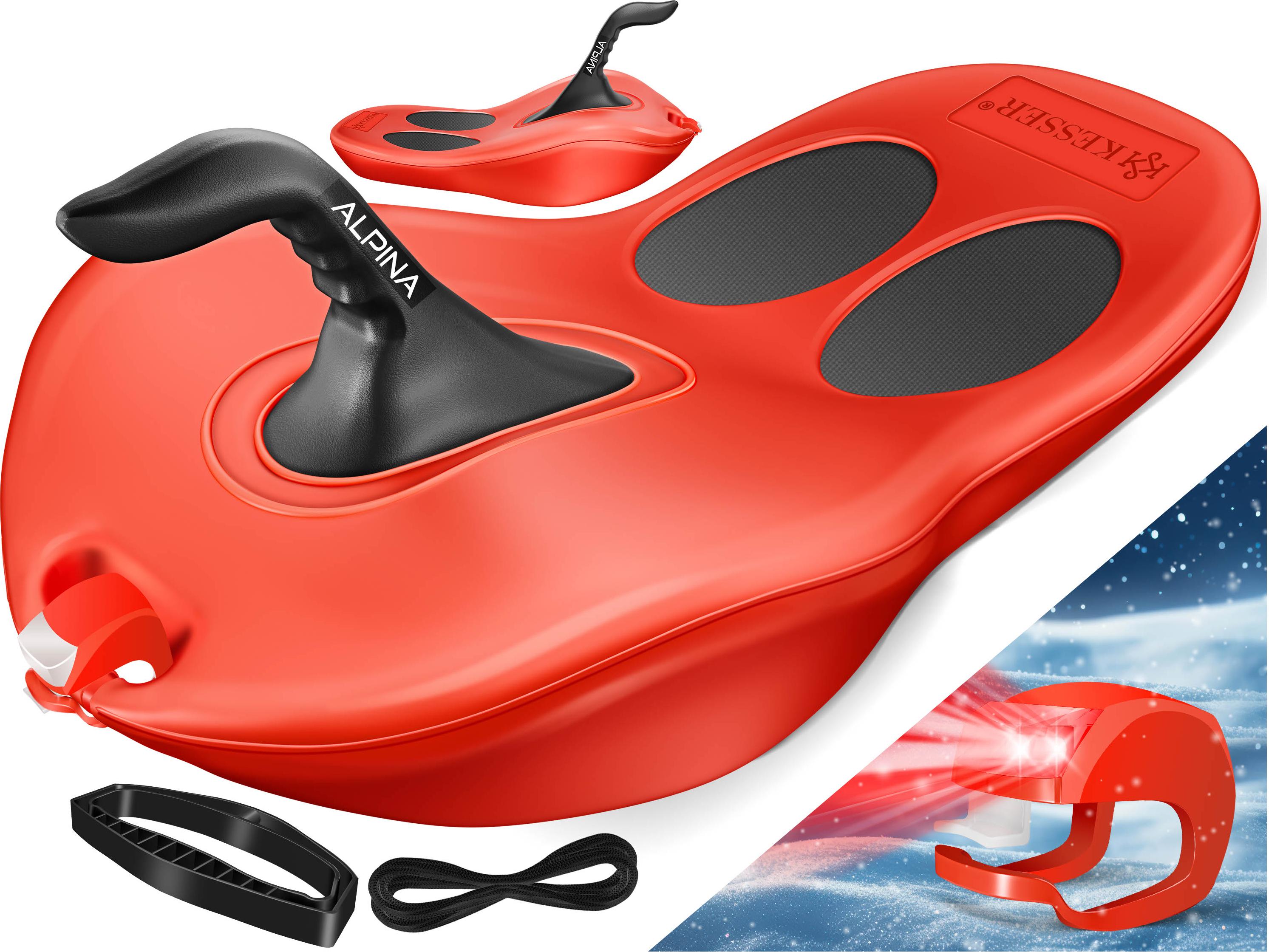 lieferbar-in 4-5 Werktagen bei dirKESSER Bob, Bob Schneebob Alpina Mit LED Licht inkl. Zugseil Schlitten rot