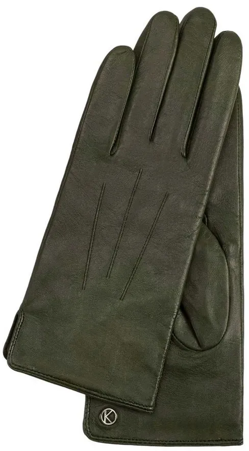 lieferbar-in 3-4 Werktagen bei dirKESSLER Lederhandschuhe CARLA (Paar, 1-St., Handschuhe) Leather Working Group zertifiziertes Leder, REPREVE Fleecefutter grün 8.5