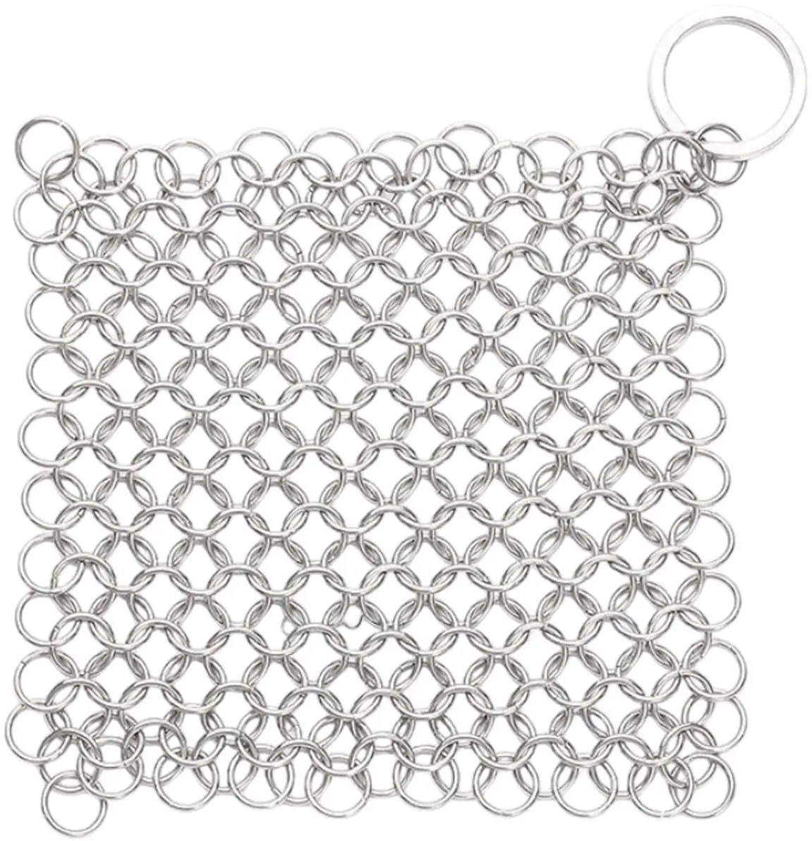 Auf Lager Versand durch AmazonCuisinel Gusseisen-Kettennetz-Schrubber + Pfannenschaber ? der patentierte Originale ergonomische Topf- und Bratpfannenreiniger aus Edelstahl und Silikon ? Premium-lebensmittelechtes Design ? leicht
