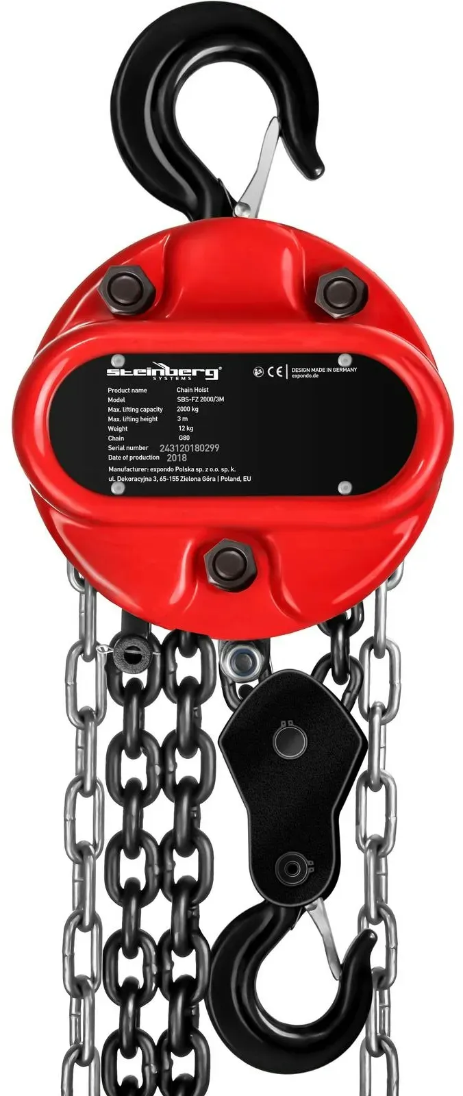 Werkzeug Hebearbeiten & Arbeiten in der Höhe Seilwinden, Wagenheber, Flaschenzüge & Zubehör Flaschenzüge Handwerkzeuge - EAN:4251548121962 - [Tragkraft 2000 kg] - Robuster Kettenzug mit einer maximalen Traglast von 2 Tonnen für sicheres und effizientes Heben schwerer Lasten in Werkstätten, auf Baustellen oder im Forstbereich. Dank der soliden Stahlkonstruktion bleibt die Stabilität auch bei intensiver Nutzung erhalten, was eine zuverlässige Leistung in jeder Arbeitsumgebung rt. [Lange Kette 3 m] - Der Flaschenzug mit 3 m langer Stahlkette ermöglicht ein flexibles Anheben und Absenken von Lasten, ideal für unterschiedlichste Hebeanforderungen. Die hochwertige Kettenführung sorgt für einen gleichmäßigen Lauf, während die optimierte Gliederkonstruktion eine hohe Bruchfestigkeit bietet und die Sicherheit beim Heben erhöht. [Robuste Stahlkonstruktion] - Gefertigt aus lackiertem Stahl für hohe Widerstandsfähigkeit gegen Verschleiß, Korrosion und Beanspruchung, perfekt für den langfristigen Einsatz. Die strapazierfähige Pulverbeschichtung schützt zusätzlich vor äußeren Einflüssen, wodurch der Hebezug auch in feuchten oder - gefunden von Kelkoo Der Steinberg Systems Kettenzug ist eine zuverlässige Wahl im unteren Preissegment und wird von einem bekannten Anbieter vertrieben. ![]() ![]() Steinberg Systems Kettenzug 2000 kg - 3 m