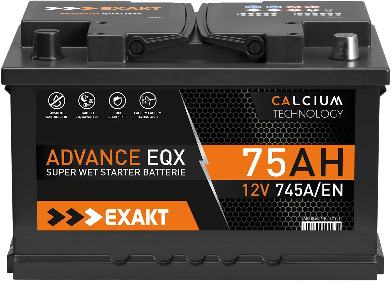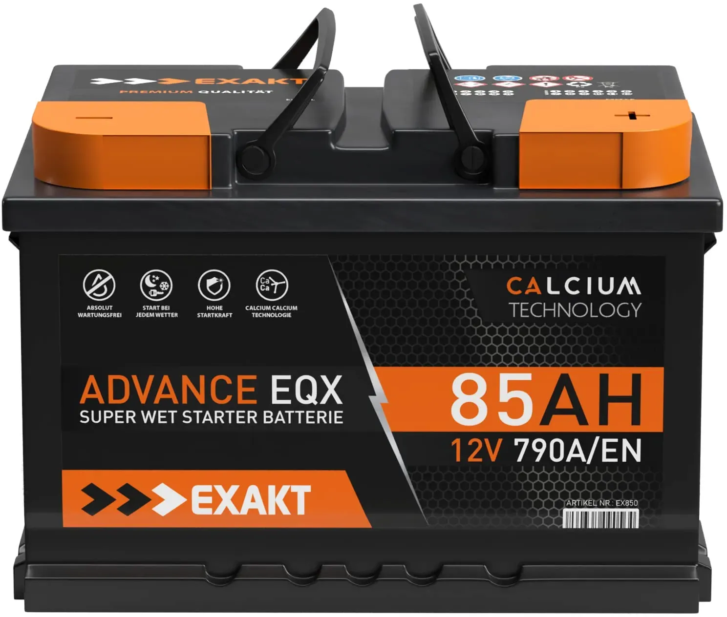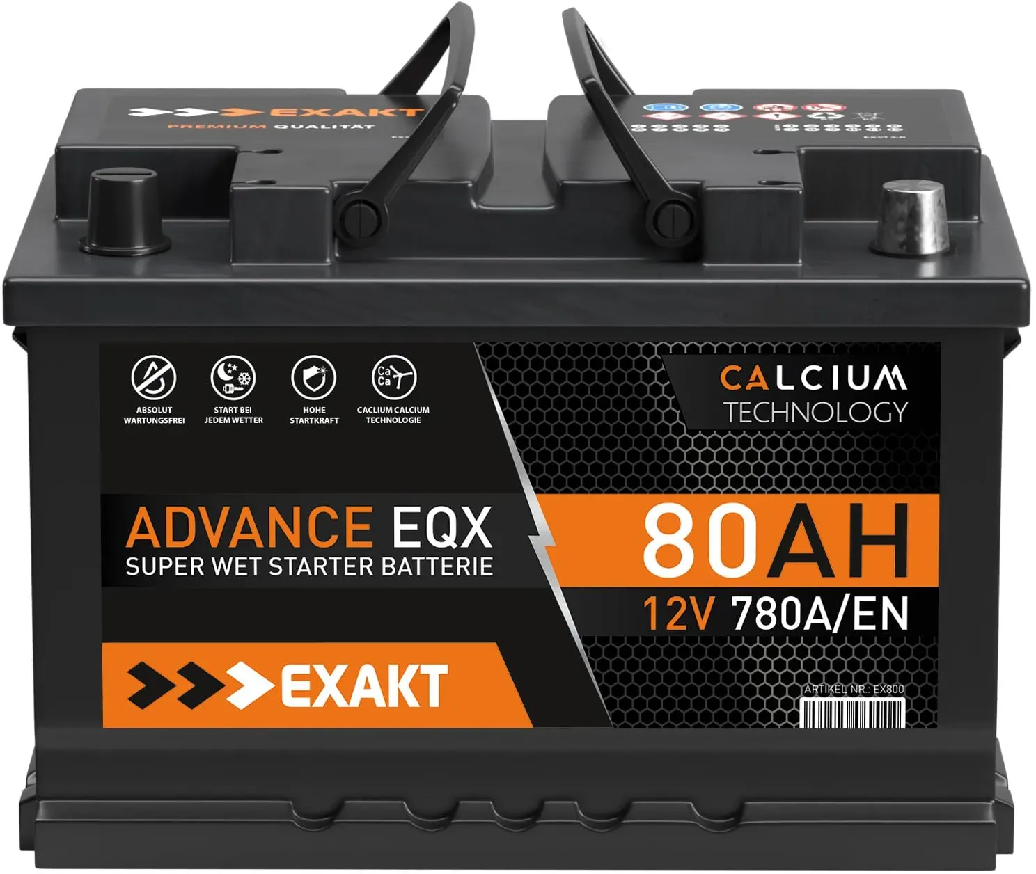 Zustand: Neu - Autobatterien - Exakt EXAKT // GERMANY - EX800 - EAN: 4260526069004 - Technische Details: Spannung: 12 Volt, Kapazität: 80Ah (Amperestunden), Kälteprüfstrom: 780A (Ampere), Maße (LxBxH): 278x175x190mm Batterietechnologie: Blei-Säure Calcium (wartungsfrei), Schaltung 0 (Pluspol Rechts), Endpolart 1 (normale Rundpole) Lassen Sie sich von der geballten Power der EXAKT Batterien begeistern. Bestehend durch ein absolut perfektes Preis-Leistungs-Verhältnis und Qualität. Alle EXAKT Batterien sind mit einer zentralen Gasableitung und 4-Kammern-Auslaufschutz mit integriertem Rückzündschutz ausgestattet Hergestellt mit den neusten Technologien, für alle gängigen Fahrzeugmodelle, ob Dieselmotor oder Benzinmotor. Die Batterien werden sowohl gefüllt als auch geladen ausgeliefert und sind wartungsfrei. - Verkäufer: SIGA Batterien im amazon.de Marketplace ![]() ![]() EXAKT Autobatterie 12V 80Ah Starterbatterie PKW KFZ Auto Batterie (80Ah)