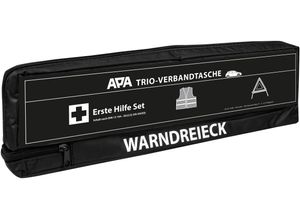 Kategorie: Erste Hilfe - Flexeo - GTIN:4260520774874 - ? 4 - HALTBAR: Alle sterilen Inhaltsteile unserer Tasche sind 4 bis haltbar. Bei der Auswahl der Materialien haben wir stets auf die höchste Qualität geachtet, wodurch die Inhaltsteile auch gegen Ende der Haltbarkeit noch eine optimale Qualität aufweisen. Nach dem Ablauf des Haltbarkeitsdatums kann der Inhalt durch ein kostengünstiges Nachfüllset ausgetauscht werden. Den Koffer können Sie weiterhin verwenden, was auch der Umwelt zugutekommt. ? INHALT NACH DIN 13164: Unsere KFZ-Verbandtasche entspricht selbstverständlich der aktuellen DIN 13164 und erfüllt somit alle Richtlinien und Pflichten für Autos aller Art. Dieser Verbandskasten / Erste Hilfe Kasten darf in keinem Auto fehlen. ? INKLUSIVE ANLEITUNG: Wenn es schnell gehen muss, erinnern sich leider die wenigsten an den Ersthelferkurs, welcher bereits teilweise mehrere Jahre lang zurück liegt. Aus diesem Grund haben wir uns besonders viel Mühe gegeben, eine übersichtliche und informative Anleitung zu erstellen. So weiß jeder auch im Notfall was zu tun ist. Deutsch ist nicht Ihre Muttersprache? Einfach den QR-Code auf der Anleitung scannen und die Anleitung in vielen Sprachen finden! ? PRAKTISCHE GRöSSE: Auch wir wissen, wie eng es in einem Auto werden kann. Daher haben wir unseren Erste Hilfe Kasten / Verbandskasten / Verbandkasten / Verbandtasche / Verbandstasche so klein wie möglich gestaltet. Dadurch kann er in der kleinsten Ecke verstaut werden und ist ... Diese APA TRIO-Verbandstasche ist eine praktische Komplettlösung mit Warndreieck und Warnweste. ![]() KFZ-Verbandtasche APA 'TRIO-Verbandstasche mit Warndreieck und Warnweste', schwarz, B:44cm H:8cm L:13cm, Nylon, Erste-Hilfe-Sets