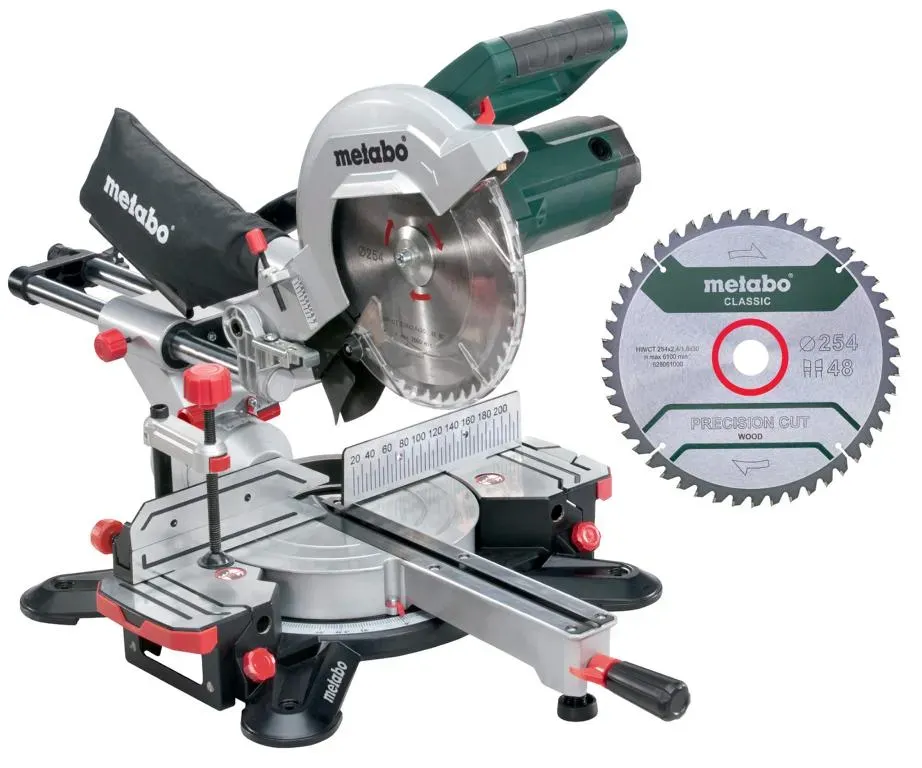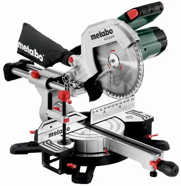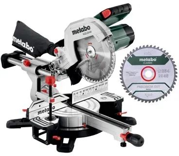 Metabo - EAN: 4061792218192 - M-Class mobile Gehrungssäge mit Schiebefunktion - leicht, präzise, benutzerfreundlich. Präzise Schnittlinie (PCL): präzise Schatten-Schnittlinie ohne Nachjustierung dank geschickt positionierter LED. Hohe Schnittleistung dank Schiebefunktion für breite Werkstücke. Drehbare Tischplatte mit schneller und präziser Einstellung gängiger Winkel über Anschlagpunkte. Sägeblattneigung von -2 bis 47 , daher auch für Unterkanten geeignet. Robuste Druckguss-Aluminiumkonstruktion für höchste Ansprüche. Effektive Staubabsaugung dank integrierter Staubschaufel. Sanfter Anlauf für lange Motor- und Antriebslebensdauer. Ausziehbare Tischverlängerungen, auch abnehmbar, um extrem lange Werkstücke darunter zu platzieren. Schnellspannvorrichtung zur sicheren Fixierung des Werkstücks von oben oder von vorne. Tiefenanschlag für einfaches Erstellen von Nuten. Alle Skalen und Bedienelemente sind vom Arbeitsplatz aus sichtbar und intuitiv bedienbar. Ergonomische Griffbereiche für den Transport mit einer oder zwei Händen. - bei galaxus.de - aus Yadore Produktdaten Dieses Set für 279.65 Euro ist empfehlenswert, da es bereits ein zweites Hartmetall-Sägeblatt enthält. ![]() ![]() Metabo Kappsäge KGS 254 M Set (613254900) mit 2. Hartmetall-Sägeblatt , Karton
