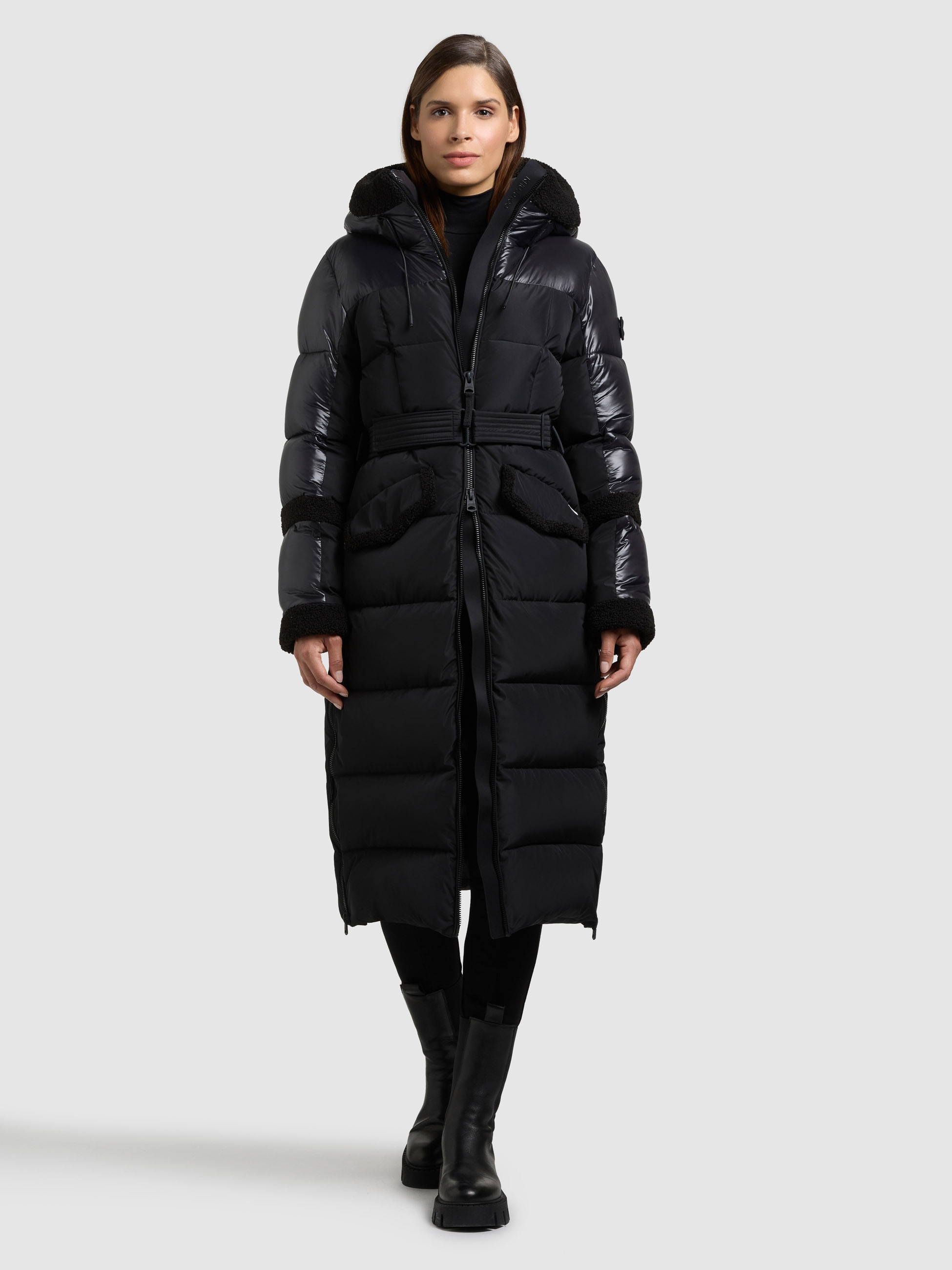 Zustand: Neu - Mäntel Damen-Mäntel - khujo - Desna2-20 - EAN: 4069222015854 - LOOK: Die lange gesteppte Winterjacke zeigt sich mit einer klaren, modernen Linienführung und modischem Materialkontrast. Plüschbesätze an Kapuze, Taschen und Ärmeln verleihen dem Design einen hochwertigen, wintertauglichen Look. MATERIAL: Das angenehm glatte Obermaterial mit softem Griff ist windabweisend und bietet ein wärmendes Tragegefühl. Innen sorgt ein weiches, glattes Futter für Komfort, während die plüschbesetzten Elemente den Mantel optisch und funktional aufwerten. PASSFORM: Die gerade geschnittene, knielange Silhouette schmeichelt der Figur und lässt sich durch ein innenliegendes Taillenzugband individuell anpassen. Die durchdachte Passform bietet durch seitliche Reißverschluss-Gehschlitze genügend Bewegungsfreiheit. DETAILS: Der Puffermantel überzeugt mit einem verkürzten 2-Wege-Reißverschluss unter einer magnetischen Abdeckleiste, zwei seitlichen Gehschlitzen sowie mit innenliegenden Rucksackträgern für flexibles Tragen. Fleece-gefütterte Reißverschlusstaschen außen und eine Innentasche ergänzen das Design funktional. Dieser Hybrid-Plüschmantel vereint modernes Design mit Funktion. Windabweisend, wärmend und mit zahlreichen praktischen Details ausgestattet, ist er ein unverzichtbarer Begleiter an kalten Wintertagen - ob in der Stadt oder bei winterlichen Outdoor-Aktivitäten. - Verkäufer: YOUMODO im amazon.de Marketplace ![]() Steppmantel KHUJO 'JULITA2', Damen, Gr. S, schwarz, 100% Polyester, unifarben, eingesetzt elastischer Bund mit Windstopper, Mäntel Steppmantel