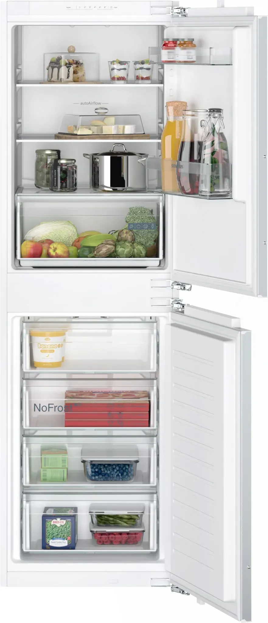 EEK: E - Kategorie: Kühl-Gefrierkombinationen - Siemens - GTIN:4242003948712 - NoFrost: nie wieder abtauen AutoAirflow: optimale Luftzirkulation und gleichmäßige Kühlung auf allen Ebenen für längere Frische LED-Licht: schneller überblick über den Inhalt deines Kühlschranks dank heller, gleichmäßiger Ausleuchtung SafetyGlas-Ablagen: extrastarkes und leicht zu reinigendes Sicherheitsglas - 851,58 Euro bei Amazon Marketplace CE - gefunden von billiger.de ![]() ![]() SIEMENS KI85NNFE0 iQ100 Einbau-Kühl-Gefrier-Kombination, 177,2 x 54,1 cm, 150 L Kühlen & 99 L Gefrieren, noFrost, autoAirflow - gleichmäßige Kühlung auf allen Ebenen, LED-Licht