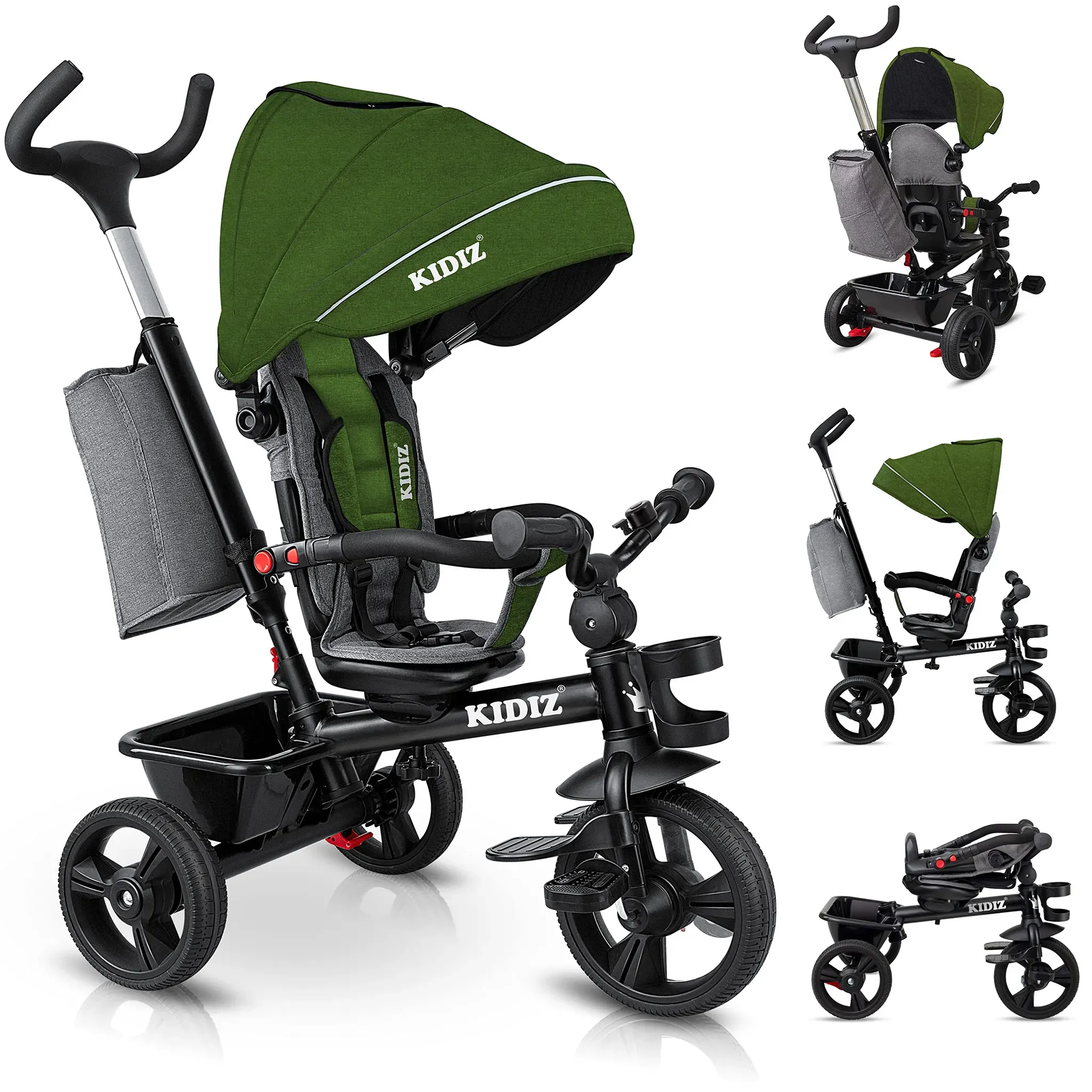 Zustand: Neu - Dreiräder - Kidiz KIDIZ - - EAN: 4255598337311 - ðŒð”ð‹ð“ðˆð ð”ððŠð“ðˆðŽðð€ð‹:Das 6in1 Dreirad lässt sich altersgerecht konfigurieren und kann somit je nach Entwicklungsstand und Fähigkeiten Ihres Kleinkindes benutzt werden. Das Kinder Dreirad ist modern und multifunktional und wächst zusammen mit dem Kind. Es verbindet Kinderwagen und Dreirad. klappbare Sonnendach mit durchsichtigem Netz, kann komplett abgenommen werden. ð‘ðˆð‚ð‡ð“ð”ðð†ð’ð’ð“ð„ð”ð„ð‘ððƒð„ ð’ð“ð€ðð†ð„: Mit dem Kinderdreirad von KESSER können Eltern noch leichter die Richtungsbestimmung übernehmen. Das integrierte Lenksystem ermöglicht eine direkte Steuerung der Vorderräder über die Schiebestange. Sicherheitsbügel am Sitz und die Schubstange für die Eltern können ebenfalls abmontiert werden, um so das Dreirad an die Bedürfnisse des wachsenden Kindes anzupassen. ðð‘ð„ðŒð’ð„ð ð€ð ð‡ðˆðð“ð„ð‘ð‘Äðƒð„ð‘ð: Bremsen an den Hinterrädern, die bei Fahrtunterbrechungen und während des Hereinlegens und des Einsteigens des Kindes in den Kinderwagen die Sicherheit erhöhen ð’ðˆð“ð™ ðŸ‘ðŸ”🎰 ðƒð‘ð„ð‡ðð€ð‘: Der Sitz ist um 360° drehbar, so können Sie Ihr Kind bei Bedarf ganz in Ihre Richtung drehen um es z.B. zu beruhigen. Der Kindersitz mit 3 Punkt-Sicherheitsgurt ist weich gepolstert und mit 600D Oxford bezogen! Der Lenker besitzt rutschfeste Griffe. ... Dieses 6in1 Dreirad ist eine erweiterte Version des Dreirads, die noch mehr Anpassungsmöglichkeiten und eine längere Nutzungsdauer bietet. ![]() ![]() KIDIZ Dreirad 6in1 Kinderdreirad mit Schubstange Lenkbar ab 9 Monaten bis 25Kg Jogger vorwärts & Rückwärtsfahrt, Korb Tasche Getränkehalter Sonnendach Gummiräder Buggy Fahrrad Baby Klappbar Khaki