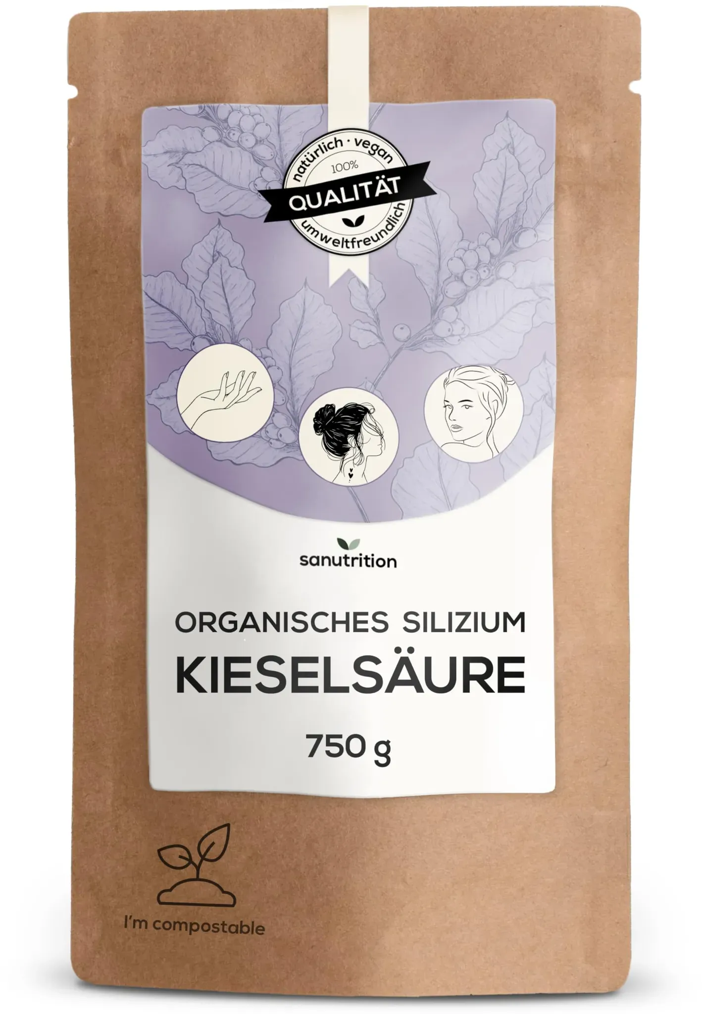 Kategorie: Nahrungsergänzungsmittel - Sanutrition - GTIN:9120057213114 - Kieselsäure Pulver | 750 g Beutel | zur Nahrungsergäzung | Natürliche Kieselerde aus Kieselalgen | Hoher Gehalt an Diatomaceous earth | Laborgeprüfte Qualität aus österreich - 15,95 Euro bei Amazon Marketplace Health & Personal Care - gefunden von billiger.de Ein gutes Angebot für 500g Kieselerde Pulver in Lebensmittelqualität, geeignet für den langfristigen Gebrauch. ![]() ![]()
