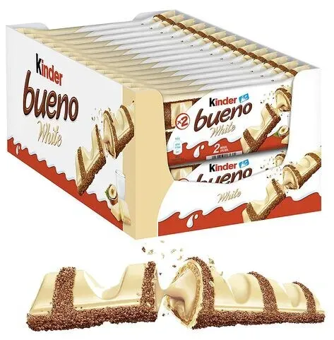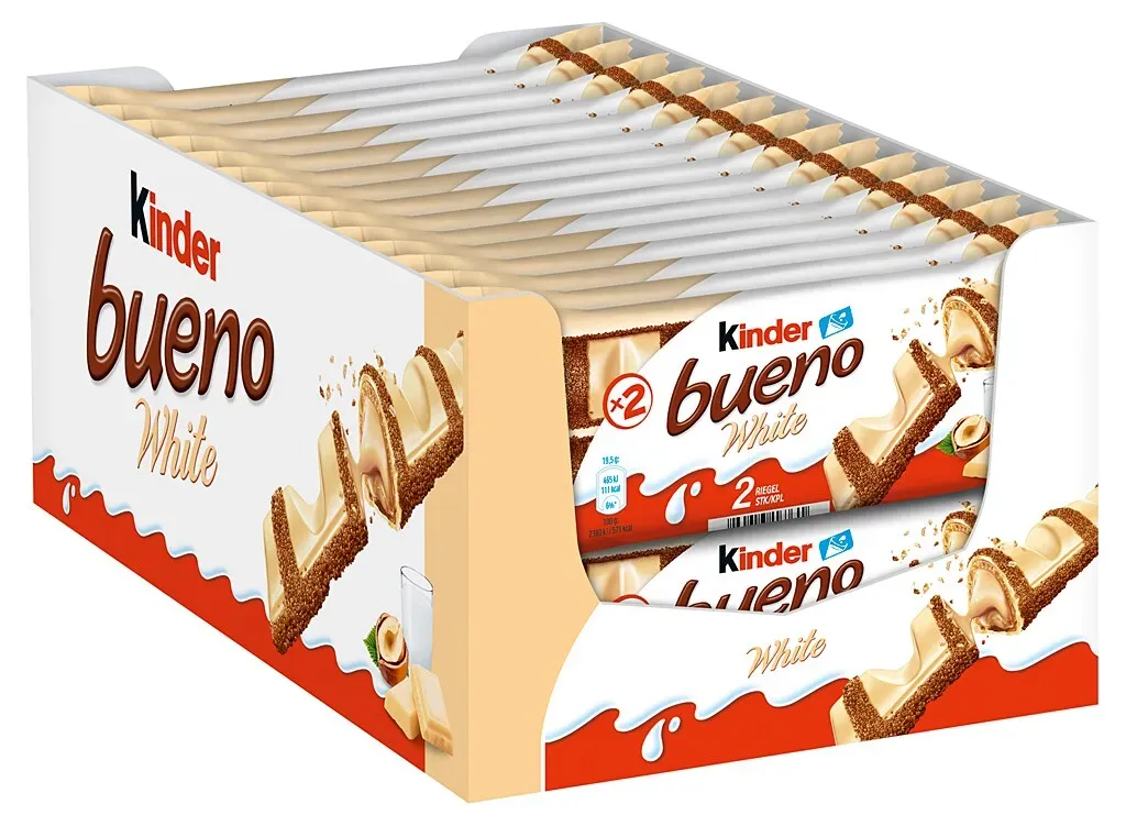 Zustand: Neu - 0,90 € / Stück - Riegel Schokoladenriegel - Kinder Ferrero - 7565 3201 - EAN: 6921294055818 EAN: 8000500041246 EAN: 4251006422457 EAN: 5054676642779 EAN: 5054186006566 EAN: 5054809429611 EAN: 5054809871724 EAN: 0000080051220 - Mit seiner zarten Knusperhülle, gefüllt mit einer raffinierten Milch-Haselnuss-Creme und umhüllt von feiner weißer Schokolade, lässt kinder bueno White die Herzen von Genießern höher schlagen Die Creme mit ausgewählten Haselnüssen begeistert mit ihrem einzigartigen Geschmack und wird durch die weiße Schokolade ideal ergänzt Die Vorratspackung mit einzeln verpackten Riegeln eignet sich hervorragend zum Teilen mit Freunden und der Familie - ob für unterwegs oder gemütlich zuhause Mein Moment, mein bueno: Der bueno White Riegel macht jeden Augenblick zu etwas ganz Besonderem Lieferumfang: 30 Packungen à 40 g mit jeweils 2 Riegeln Ferrero kinder bueno White / Leckere Milch-Haselnuss-Creme (53 %), ummantelt von weißer Schokolade / Vorratspackung zum Teilen - bei Amazon.de Dieses 30er-Pack ist eine kostengünstige Option für den Kauf einer größeren Menge klassischer Kinder Bueno Riegel. ![]() ![]() Ferrero kinder bueno 30er-Pack Schokoriegel »kinder bueno«