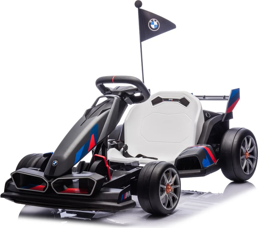 BMW - EAN: 5413822562208 - Altersempfehlung: Ab nFront- und Rücklichter sowie AmbientebeleuchtungSoft-Start-FunktionRutschfeste VorderräderVerschleißfeste Hinterräder aus NylonZwei 200-Watt-MotorenTragkraft: 60 kgSitzhöhe: 12 cmSitzbreite: 35 cmGeschwindigkeit: 7 bis 12 km/hSicherheitsgurteFunktionale BremseVorwärts- und RückwärtsgangOffizielle BMW-LizenzVerstellbarer RahmenFunktionale HinterradfederungFahrzeit: ca. 70 MinutenMontagezeit: ca. 25 MinutenAkku: 24V 7Ah85 % vormontiertSicherheit des elektrischen BMW Go-Karts für Kinder:Das BMW Go-Kart wurde mit besonderem Augenmerk auf Sicherheit entwickelt, damit Kinder jede Fahrt unbeschwert genießen können. Es verfügt über zwei Geschwindigkeitsstufen (7 und 12 km/h), wobei die höhere Geschwindigkeit durch eine Sicherheitsfunktion geschützt ist und nicht eigenständig vom Kind verändert werden kann. Ein stabiler Sicherheitsgurt sorgt dafür, dass das Kind sicher im Sitz bleibt, während die Bremse eine schnelle und kontrollierte Stopps ermöglicht. Die sanfte Anfahrfunktion ( Soft-Start ) verhindert ruckartige Bewegungen beim Starten oder Abbremsen und erhöht somit den Komfort und die Sicherheit zusätzlich.Förderung motorischer Fähigkeiten und Stabilität:Das Fahren mit dem BMW Go-Kart ist nicht nur ein großer Spaß, sondern unterstützt auch aktiv die motorische Entwicklung Ihres Kindes. Durch das selbstständige Steuern trainieren Kinder ihre Koordination und ihr räumliches Vorstellungsvermögen. Das Lenken verbessert die ... Manomano.d e