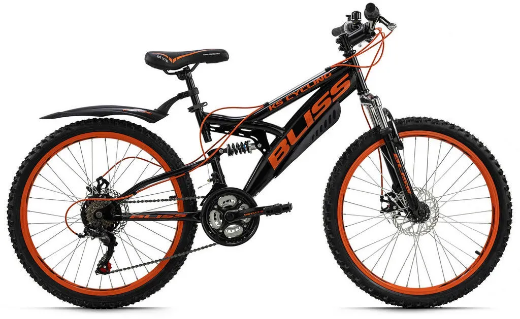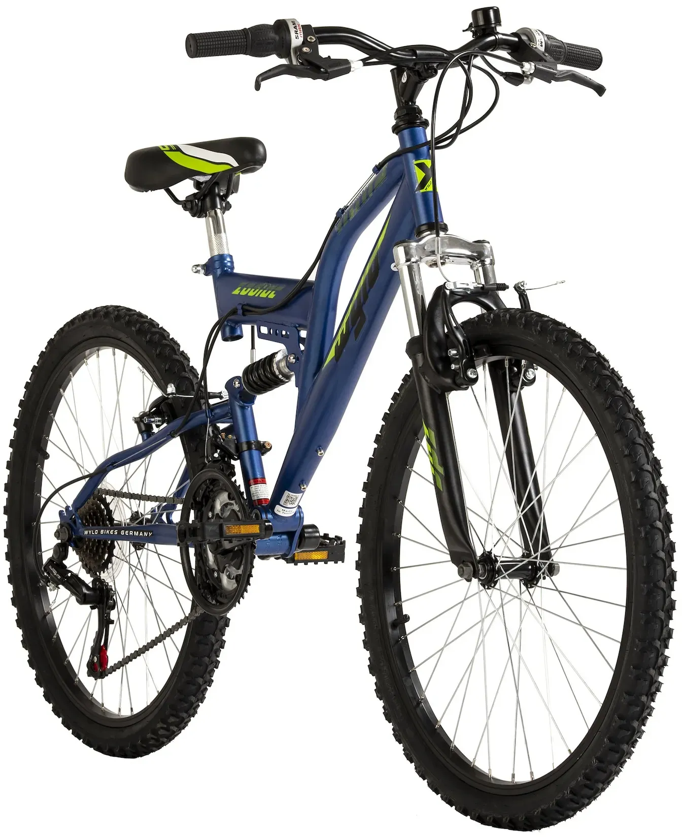 Zustand: Neu - Kinderfahrräder - WYLD - M302K - EAN: 4250547533943 - Auf die Plätze, fertig, Action! Das vollgefederte WYLD 24' Kinderfahrrad ZODIAC ist ein robustes Fully-Mountainbike für die Kleinen, das dabei dem Look der Großen in nichts nachsteht. Die Basis bilden die Federgabel und der gefederte Rahmen. Die grobstolligen Reifen und das Design in Electric Blue oder weiß machen das Kinderrad zu einem coolen Hingucker. Für Sicherheit sorgen dabei V-Brakes vorne und hinten. Das Bike ist außerdem mit einer 18-Gang-Kettenschaltung von SHIMANO ausgestattet. Technischer Hinweis: Die Fahrräder werden zu 85% fertig montiert geliefert, eine fahrfertige Endmontage ist von einer fachkundigen Person auszuführen. Empfohlene Körpergröße: 130-160 cm - Verkäufer: KS Cycling im amazon.de Marketplace Das KS Cycling Jugendfahrrad Mountainbike Fully 24 Bliss ist eine gute Option für Jugendliche mit einem ansprechenden Design. ![]() ![]()