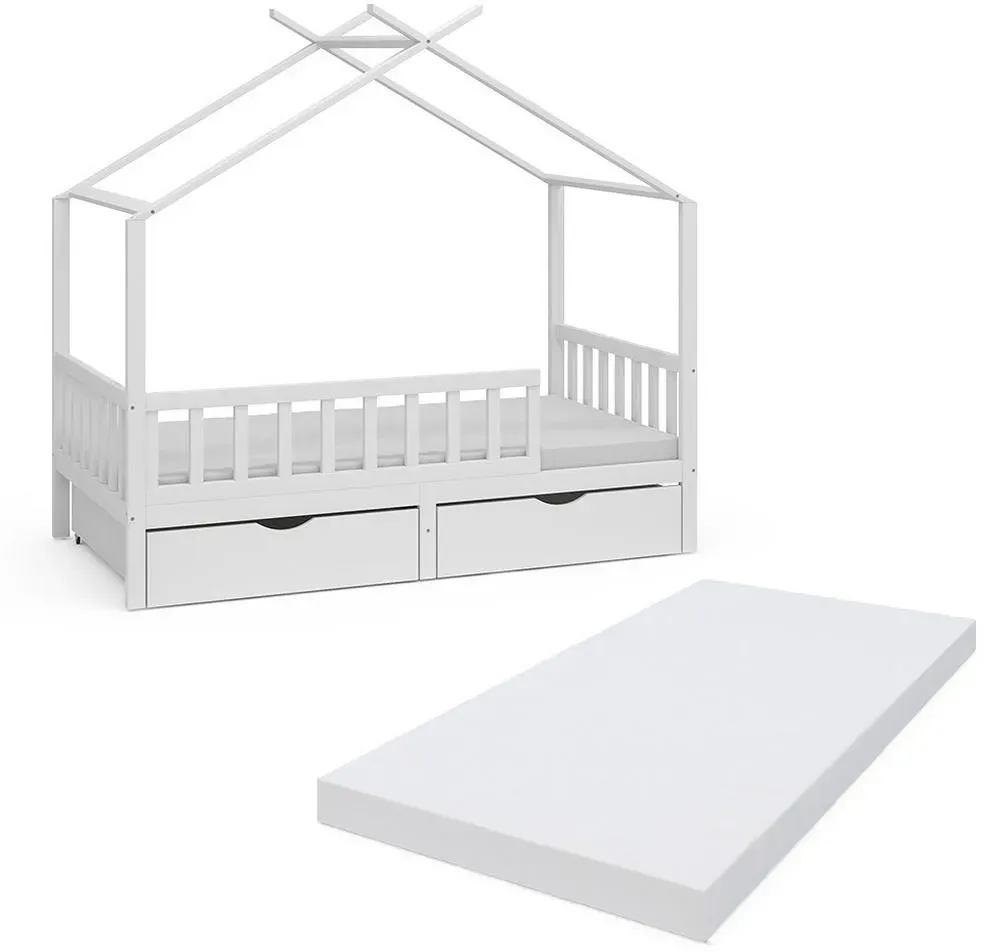 keine Angabe Sofort lieferbar, 1-3 Werktage in_stockHausbett Wiki, Weiß, 80x160 cm mit Schubladen und Matratze Vitalispa