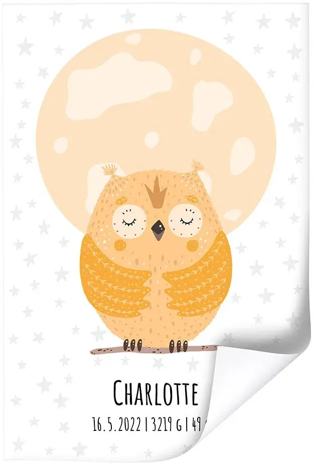 Gewöhnlich versandfertig in 4 bis 5 TagenORWONet ORWO 40 x 60 cm Kinderposter mit Namen & Geburtsdatum | Eule Owlie | Poster Kinderzimmer | Made in Germany | personalisiertes Geschenk