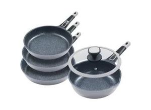 lieferbar-in 3-4 Werktagen bei dirKING Pfannen-Set Moonscape, Aluminiumguss (Set, 5-tlg., je 1 Pfanne Ø 20/24/28/28 cm, H: 4,5/5/5,5/8,5 cm, - 1/1,9/2,5/4 l), abnehmbarer Griff, MOONSCAPE-Beschichtung, Induktion grau