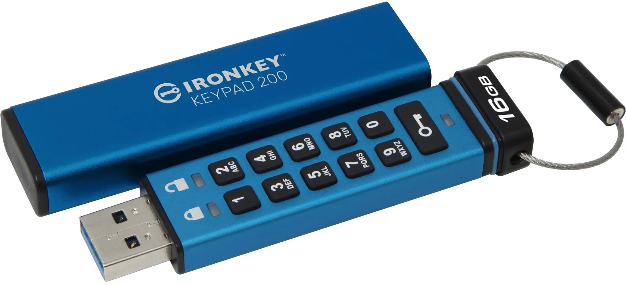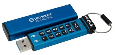 Auf Lager Versand durch AmazonKingston IronKey Keypad 200 512GB Verschlüsselter USB | Alphanumerische Tastatur | Multi-Pin-Zugang | XTS-AES 256-bit | FIPS 140-3 Level 3 Zertifiziert (Ausstehend) | IKKP200/512GB, Blau