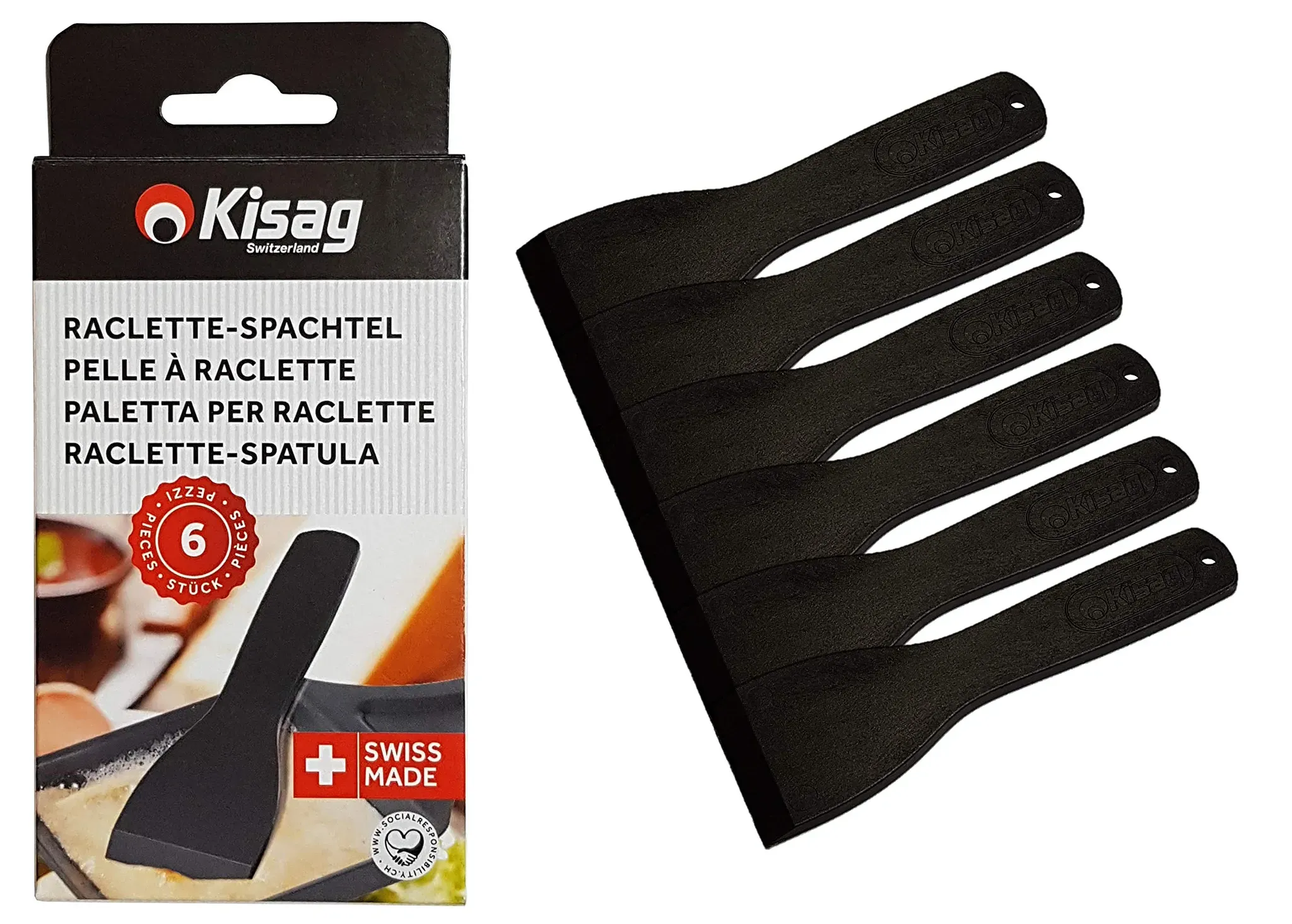 Kategorie: Raclettes - Kisag - GTIN:7610251101895 - Aus Polyamid und hitzebeständigem Material. Set enthält 6 Stück Raclette-Spachtel. Leicht zu verwenden und zu reinigen, spülmaschinenfest. Ein perfektes Geschenk für Familie und Freunde. Hergestellt in der Schweiz. - 12,95 Euro bei Amazon Marketplace Home - gefunden von billiger.de Dieser Feuerstab mit Piezozündung ist eine sichere und praktische Lösung zum Anzünden von Fondue oder Grill. ![]() ![]() Kisag Feuerstab mit Metallrohr weiß mit Piezozündung & 1 Kigas 400 ml