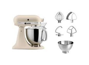 Mixer Küchenmaschinen Wohnen Küchenkleingeräte - - KITCHENAID-Küchenmaschine ARTISAN 5KSM175PS mit kippbarem Motorkopf: unerreicht in Qualität und Leistung! Stabile Konstruktion aus Spritzgussmetall und Edelstahl. Mit Direktantrieb und 10 Betriebsstufen. Knetet, rührt und mischt schnell und gründlich. Unkompliziert und sicher im Gebrauch., Technische Daten: Kabellänge: 1,45 m, Leistung: 300 W, WEEE-Reg.-Nr. DE: 72.275.340, Handhabung Komfort: Antriebsart: Direktantrieb, Rührsystem: planetarisch, Standardzubehör: Mitgelieferte Rührelemente: Knethaken K45DH, Flachrührer K5THCB, Schneebesen mit 6 Drähten K45WW, Flexi-Rührer 5KFE5T, Mitgelieferte Rührschüsseln: 4,8 L Edelstahlschüssel 5K5THSBP, 3 L Edelstahlschüssel 5KB3SS, Mitgeliefertes Zubehör: Spritzschutz mit Einfüllschütte 5KN1PS, Passendes separat bestellbares Zubehör (Artikelnummer/Herstellerbezeichnung): Holen Sie mehr aus Ihrer Küchenmaschine heraus mit vielfältigem Zubehör, von Pasta-Roller und Food-Processor bis hin zu einer neuen Schüssel. Jetzt bestellen auf otto.de/Kitchen Aid Zubehör, Programme Funktionen: Anzahl Geschwindigkeitsstufen: 10, Zubereitungsfunktionen: Kneten, Mixen, Rühren, Farbe Material: Farbbezeichnung: Empire Rot, Material Gehäuse: Zink, Material Rührschüssel: Edelstahl, Materialherstellungsverfahren: Druckguss, Artikelbezeichnung: Modellbezeichnung: 5KSM175PSEER EMPIRE ROT, Maße Gewicht: Breite: 24 cm, Gewicht: 10,4 kg, Höhe: 36 cm, Tiefe: 37 cm, Verarbeitungsmengen: Fassungsvermögen 2. ... Dieses Modell in Fresh Linen ist eine elegante Wahl und beinhaltet Zubehör im Wert von ca. 112,-€ UVP. ![]() 366994 / DE- Billiger- baur.de KITCHENAID Küchenmaschine '5KSM175PSE', fresh linen, B:24cm H:36cm T:37cm, Küchenmaschinen, mit Zubehör im Wert von ca. 112,-€ UVP, Küchenmaschine