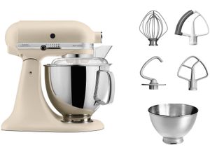 Mixer Küchenmaschinen Wohnen Küchenkleingeräte - - KITCHENAID-Küchenmaschine ARTISAN 5KSM125PS mit kippbarem Motorkopf: unerreicht in Qualität und Leistung! Stabile Konstruktion aus Spritzgussmetall und Edelstahl. Mit Direktantrieb und 10 Betriebsstufen. Knetet, rührt und mischt schnell und gründlich. Unkompliziert und sicher im Gebrauch., Technische Daten: Kabellänge: 1,45 m, Leistung: 300 W, WEEE-Reg.-Nr. DE: 24.244.119, Handhabung Komfort: Antriebsart: Direktantrieb, Art der Bedienung: Schieberegler, Rührsystem: planetarisch, Standardzubehör: Mitgelieferte Rührelemente: Knethaken K45DH, Flachrührer K5THCB, Schneebesen mit 6 Drähten K45WW, Mitgelieferte Rührschüsseln: 4,8 L Edelstahlschüssel 5K5THSBP, Mitgeliefertes Zubehör: Rezeptbuch (zum selbst ausdrucken unter Wichtige Informationen - Bedienungsanleitung), Passendes separat bestellbares Zubehör (Artikelnummer/Herstellerbezeichnung): Holen Sie mehr aus Ihrer Küchenmaschine heraus mit vielfältigem Zubehör, von Pasta-Roller und Food-Processor bis hin zu einer neuen Schüssel. Jetzt bestellen auf otto.de/Kitchen Aid Zubehör, Programme Funktionen: Anzahl Geschwindigkeitsstufen: 10, Zubereitungsfunktionen: Aufschlagen, Emulgieren, Kneten, Quirlen, Unterheben, Untermengen, Farbe Material: Farbbezeichnung: onyx schwarz, Material Gehäuse: Zink, Materialherstellungsverfahren: Druckguss, Artikelbezeichnung: Modellbezeichnung: Artisan 5KSM125EOB, Maße Gewicht: Breite: 24 cm, Gewicht: 10,4 kg, Höhe: 36 cm, Höhe mit hochgeklappten ... ![]() KITCHENAID Küchenmaschine '5KSM125EER', beige (creme), B:24cm H:36cm T:37cm, Küchenmaschinen, creme, Küchenmaschine