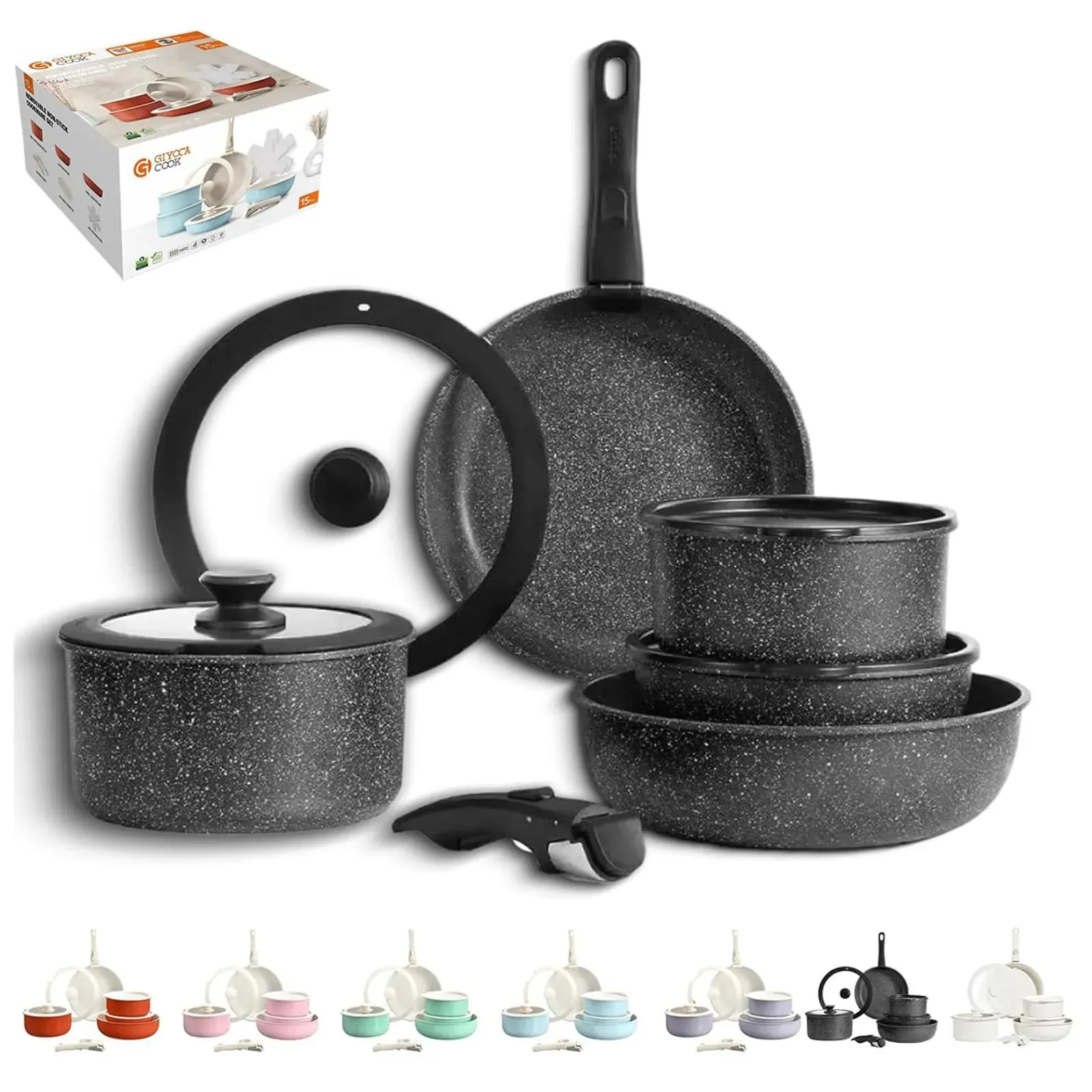 Verfügbarkeit: Auf Lager - Kategorie: Töpfe - Premium Medical Stone Non-Stick Coating:Gourmetific Cookware Set is equipped with a superior Medical Stone non-stick coating that ensures effortless food release and easy cleanup,It reduces the oil needed for cooking,contributing to a healthier culinary experience Flexible Removable Handle Design:Pot features a versatile removable handle that simplifies transitions between cooking,serving,and storage,The handle is robust and ergonomically designed,offering a secure and comfortable grip for safe handling Versatile Household Pot:Suitable for both induction cookers and gas stoves,this multi-purpose pot caters to a variety of cooking needs,It handles everything from stir-frying vegetables to crafting sauces with ease Even Heat Distribution:Built with durable aluminum construction,Cookware Pots and Pans set provides fast,even heat distribution,Whether you're simmering sauces or frying vegetables,ensures consistent results every time Space-Saving Stackable Design:The pot's stackable design enables tidy storage of all components,maximizing kitchen space efficiency,It's particularly suitable for compact kitchens or those who prefer an organized storage solution - 215,99 Euro bei Amazon Marketplace Home - gefunden von billiger.de ![]() ![]() Gourmetific Cookware Set, Gourmetific Cookware Set Stackables With Removable Handle, 5/9/11/15 Piece, Oven Safe, Easily Clean, for Kitchen (Black,15Pcs)