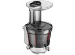 Küchenkleingeräte Wohnen - - Mit diesem Entsafter- und Soßenzubehör für Ihre KitchenAid-Küchenmaschine wird es ganz einfach, fünf Obst- oder Gemüseportionen am Tag zu sich zu nehmen., Allgemein: Weitere Vorteile: Zweistufige, schonende Entsaftung dank Vorschnitt, mit Edelstahlklinge und Pressschnecke: Für maximale Saftausbeute bei weniger Vorbereitung und weniger Schaumbildung., Zweiteiliger, besonders großer Einfüllstutzen mit Einfülltablett: Für Obst und Gemüse unterschiedlicher Größe: weich, hart oder mit Blättern, reduziert das Vorschneiden., Drei Siebe für niedrigen oder hohen Fruchtfleischanteil sowie Soßen und Konfitüren: Für eine Vielzahl von Zubereitungen, darunter samtige Kräuter- und Gemüsesäfte, pikante Coulis, sämige Fruchtpürees oder süße Konfitüren., Kompaktes Design zur bequemen Anbringung an der Küchenmaschine: Endlose Möglichkeiten an jedem Tag, einfache Aufbewahrung., Tropfstopp: Zum Unterbrechen des Saftflusses zwischen den einzelnen Gläsern., Entsafterschüssel »Ultimate Crystal«-Kunststoff, Zubehör passend für: Mini 3,3 Liter 5KSM3311X, Classic 4,3 Liter 5K45SS, Ultra Power 4,3 Liter KSM90, Artisan 4,8 Liter: KSM125, KSM150, 5KSM156, KSM175PS, 5KSM185PS, Artisan 6,9 Liter, 5KSM7580X, Heavy Duty 4,8 Liter 5KPM5, Heavy Duty 6,9 Liter 5KSM7591X (nicht für 5KSM7990X), Maße Gewicht: Breite: 17,8 cm, Gewicht: 2.200 g, Höhe: 29,5 cm, Tiefe: 24,6 cm, Farbe Material: Farbbezeichnung: silberfarben, Material: Kunststoff, Wissenswertes: Sprachen ... ![]() ![]() Kitchenaid 5KSM1JA Entsafter Vorsatz