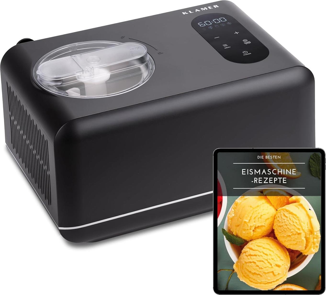 lieferbar-in 3 Werktagen bei dir (nach Weihnachten)KLAMER Eismaschine 3-in-1 Eismaschine, Slush Maschine & Joghurtbereiter 1,5 L, 150 W hau..., 1,5 l, 150 W, Raffiniertes Rührsystem, Kühl- & Heizfunktion, digitales Rezeptbuch schwarz