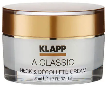 8 Händlerangebote bei billiger.de - Kategorie: Sonstige Gesichtspflegeartikel - Klapp Cosmetics - Produktdetails: Neck Decollet CreamMehr Geschmeidigkeit und spürbare Spannkraft Die A Classic Neck Decollet Cream von Klapp ist eine speziell entwickelte Creme, die gezielt auf die Bedürfnisse von Hals und Dekollet eingeht. Diese hochwirksame Formel hilft, die Haut in diesen sensiblen Bereichen zu straffen, zu pflegen und Zeichen der Hautalterung zu reduzieren.Hautzustand: Spannungsgefühl Trockenheit, Tiefere Falten Straffende Wirkung: Die Creme ist mit speziellen straffenden Wirkstoffen angereichert, die dazu beitragen, die Elastizität der Haut im Bereich von Hals und Dekollet zu verbessern. Dies trägt dazu bei, das Erscheinungsbild von schlaffer Haut zu minimieren. Anti-Aging-Bestandteile: Die Formel enthält Anti-Aging-Wirkstoffe wie Retinol und Peptide, um feine Linien und Falten zu reduzieren. Sie fördern die Regeneration der Haut und verleihen ihr ein jugendlic...|' - GTIN:4250094900243 ![]() KLAPP A CLASSIC Neck & D collet Cream 50 ml