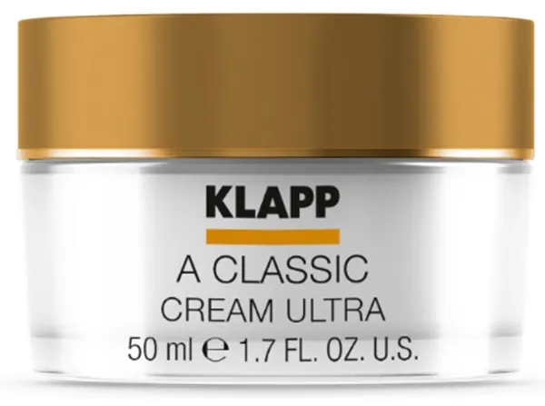 8 Händlerangebote bei billiger.de - Kategorie: Tagespflege - Klapp Cosmetics - Produktdetails: Cream UltraVerleiht ein glattes, weiches Hautgefühl Die Cream Ultra aus der Linie A Classic von Klapp ist eine hochwirksame Anti-Aging-Tagescreme, die speziell für reife, anspruchsvolle Haut entwickelt wurde. Sie kombiniert regenerierende Vitamin-A-Komplexe mit beruhigenden Pflegekomponenten, um die Hautstruktur nachhaltig zu stärken, Falten zu glätten und ein geschmeidiges Hautgefühl zu erzeugen. Die samtige Textur zieht schnell ein, spendet intensiv Feuchtigkeit und verbessert die Elastizität. Mit integrierten lichtschützenden Komponenten und hautglättenden Wirkstoffen ist die Klapp A Classic Cream Ultra auch ideal als Make-up-Basis geeignet. Die Formulierung ist perfekt abgestimmt auf Haut mit Trockenheit, Spannungsgefühl oder altersbedingtem Volumenverlust für einen ebenmäßigen, vitalen Teint mit jugendlicher Ausstrahlung. Vorteile Mindert Falten und Spannungsgefüh...|' - GTIN:4250094900274 ![]() KLAPP A CLASSIC Cream Ultra 50 ml