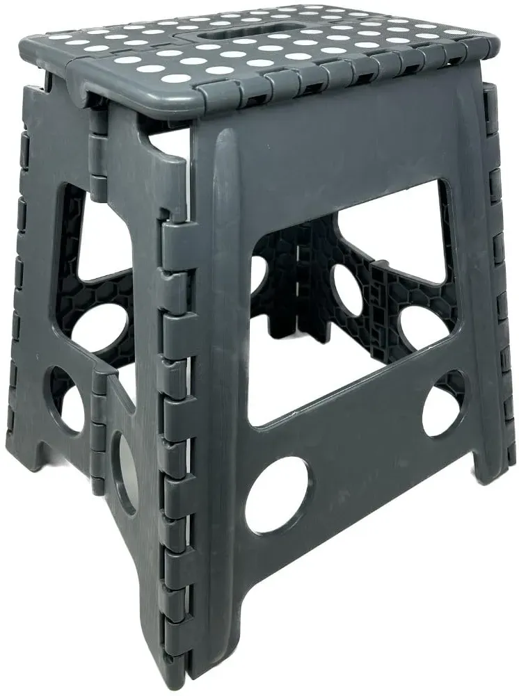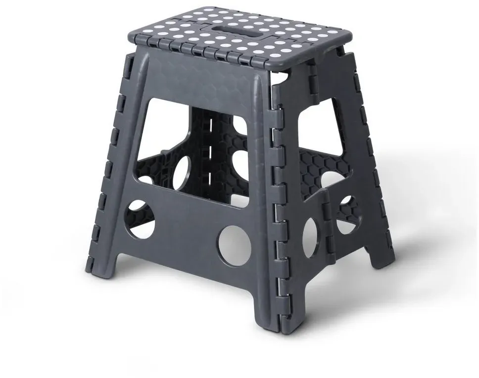 lieferbar-in 3-4 Werktagen bei dirBestLivings JEDERMANN Klapptritt TH-04838 (1-St), Klapphocker, belastbar bis 90kg, Faltbarer Hocker mit Tragegriff grau 32 cm x 39 cm
