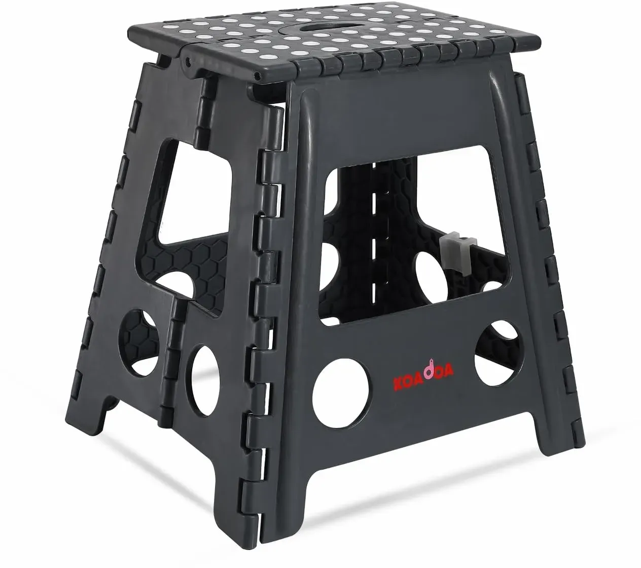 Kategorie: Leitern - koadoa - GTIN:0647349479076 - Safe Upgrade Folding Stepping Stool Dieser Tritthocker verfügt über eine verbesserte Klappstange, die verhindern kann, dass er beim Stehen nach innen kollabiert.Spezielle Gummipunkte auf der Oberfläche und rutschfeste schwarze Gummiriemen an jedem Fuß, vier runde Ecke super sicher schützt Ihren Körper vor dem Absturz.All dieses Design ist setzen Benutzer sicher zuerst. Premium Qualität Unser faltbarer Tritthocker ist aus robustem und strapazierfähigem Hochleistungskunststoff für lange Haltbarkeit hergestellt und wurde durch das EN 14183 Zertifikat genehmigt. Die maximale Tragfähigkeit des faltbaren Hockers ist 330lbs, die sicher für Erwachsene. Sparender Platz Der faltbare Tritthocker spart mehr als 90% Platz in Ihrem Schrank, wenn er zusammengeklappt ist. Es ist schnell und einfach faltet weg für bequeme Lagerung, so dass Sie mit einer Handbewegung öffnen können. Und weil er so kompakt ist, können Sie ihn auch in einer Ecke zu Hause verstecken. Multipurpose Use Es ist nicht nur ein faltbarer Tritthocker für Kinder, sondern auch ein großartiger Schritt für Erwachsene für jede Hausarbeit oder Aufgabe, die höher hinauf muss. Es verfügt über einen Tragegriff für den einfachen Transport, es ist ein perfekter Hocker für Küche, Bad, Esszimmer, Büro, Garten, Camping, Angeln und mehr Innen- oder Außenaktivitäten. Warme Tipps Der Tritthocker muss in trockener und flacher Oberfläche verwendet werden; halten Sie beide Füße auf der ... Dieser faltbare Hocker ist mit einem Tragegriff ausgestattet, was ihn besonders handlich macht. ![]() ![]()