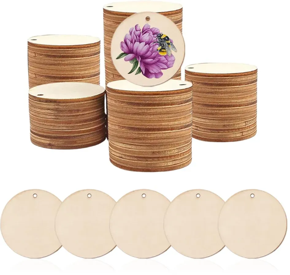 Auf Lager Versand durch AmazonCUWELT 48 Stück Große Runde Holzscheiben mit Loch, 10cm Holzplatten zum Basteln, Blanko Holzkreis mit Jute Schnur, Holz Anhänger Geschenkanhänger für Weihnachtsbaum DIY Handwerk Türschilder