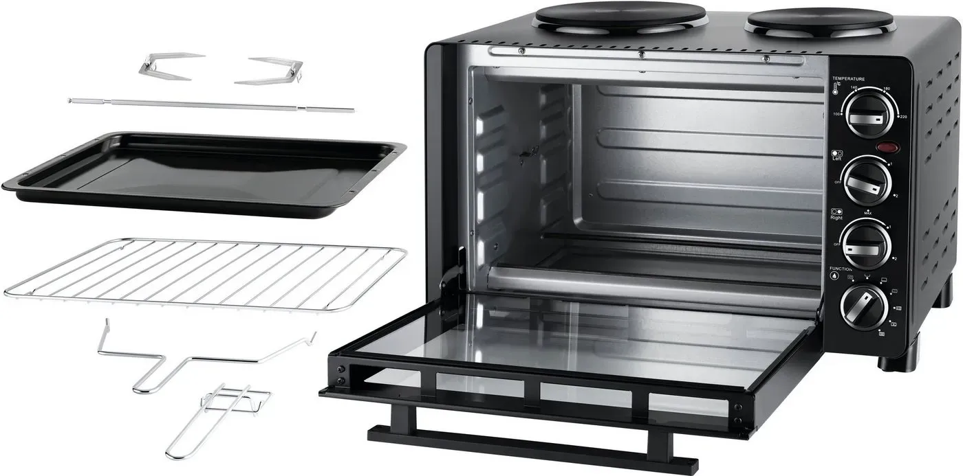 lieferbar-am nächsten Werktag bei dirHanseatic Kleinküche 97530243 HMO366BKB, mit Doppelkochplatte, Back- und Krümelblech, Grillrost, 36L Garraum schwarz