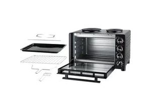 Hanseatic - EAN: 4029686447417 - Der Hanseatic Mini Backofen HMO366BKB ist eine kleine Kompaktküche. Sie kann sowohl beim Campen als auch in einer kleinen Single Küche verwendet werden. Mit 2 Herdplatten und einem Ofen mit Oberhitze, Unterhitze, Umluft und Drehspieß bieten sich hier vielfältige Möglichkeiten für das Kochen und Backen. Eine perfekte Miniküche im kleinen Format. Durch die Doppelverglasung wird das Sichtfenster nicht heiß. Der Mini Ofen findet durch seine geringen Gerätemaße fast an jeden Ort eine Platz., Allgemein: Weitere Vorteile: Vielseitige Funktionen: 6 verschiedene Einstellungen für unterschiedliche Koch- und Backanforderungen., Gute übersicht: Beleuchteter Ofen für optimale Sicht während des Kochens., Umfangreiches Zubehör: Inklusive Backblech, Grillrost, Rotationsspieß, Krümelblech und Entnahmegriffe., Flexible Heizoptionen: Ober- und Unterhitze, Umluft sowie Grillspieß., Präzise Temperatureinstellung: Ofen einstellbar von 100 C bis 220 C, Technische Daten: Leistung: 2940 W, Leistung Grill: 1.440 W, Art Heizsystem: Edelstahl-Heizelement, Kabellänge: 0,9 m, WEEE-Reg.-Nr. DE: 28.144.017, Handhabung & Komfort: Ausstattungsdetails Garraum: lackiert, Temperatureinstellung minimal: 100 C, Temperatureinstellung maximal: 220 C, Programme & Funktionen: Betriebsart: Heißluft, Ober-/Unterhitze, Oberhitze, Umluft, Unterhitze, Zubereitungsfunktionen: Aufbacken, Auftauen, Backen, Braten, Erhitzen, Erwärmen, Garen, Grillen, Rösten, Schmelzen, Toasten, Warmhalten, ... ![]() HANSEATIC Kleinküche ''97530243 HMO366BKB'', schwarz, B:51cm H:37cm T:42cm, Minibacköfen, mit Doppelkochplatte, Back- und Krümelblech, Grillrost, 36L Garraum